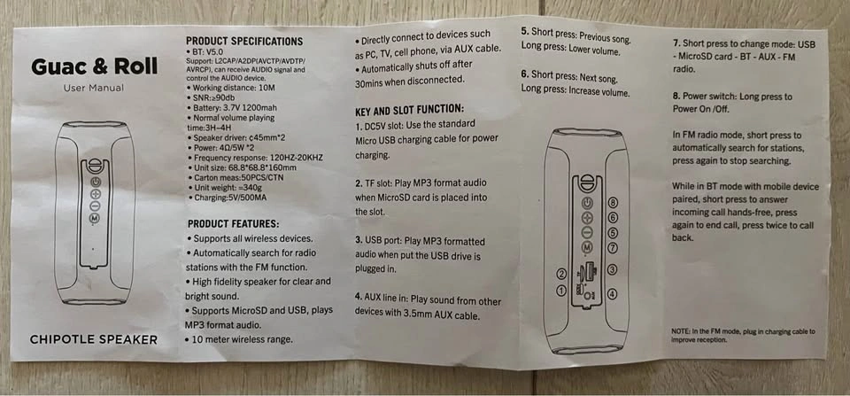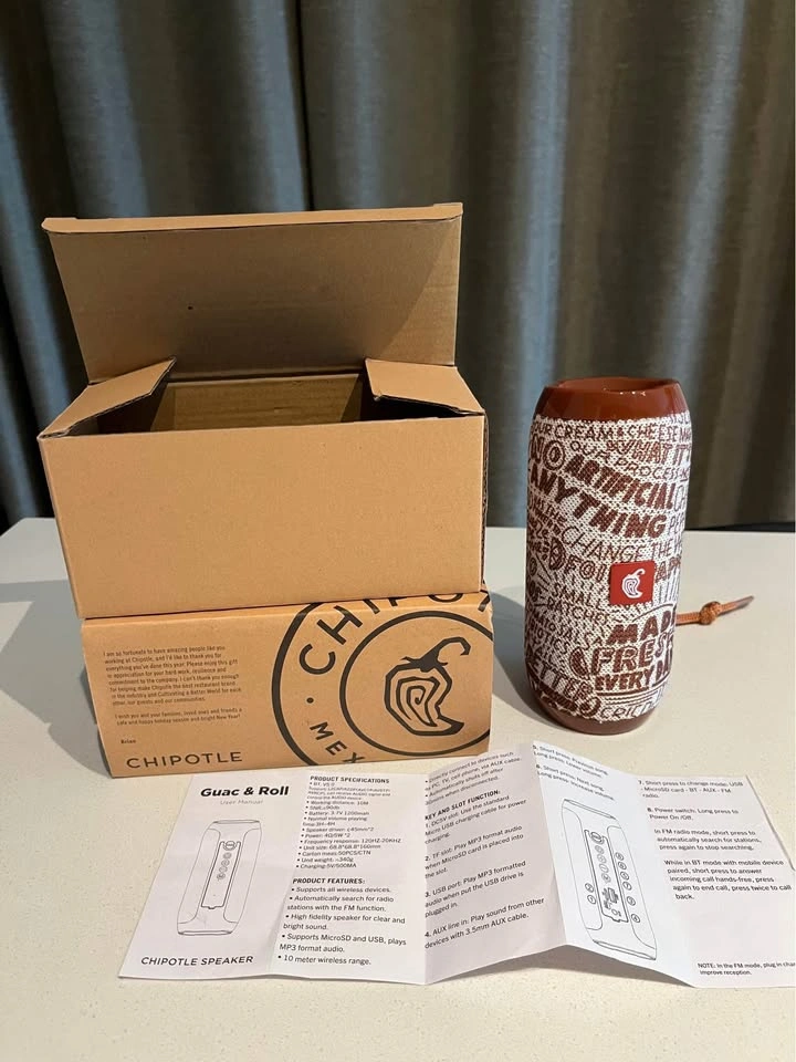 Greet gift for Chipotle lovers. Supports all wireless devices and searches automatically for radio stations, clear and bright sound. 10 metres range. Shuts off after 30 minutes when disconnected. Charging via regular USB port.