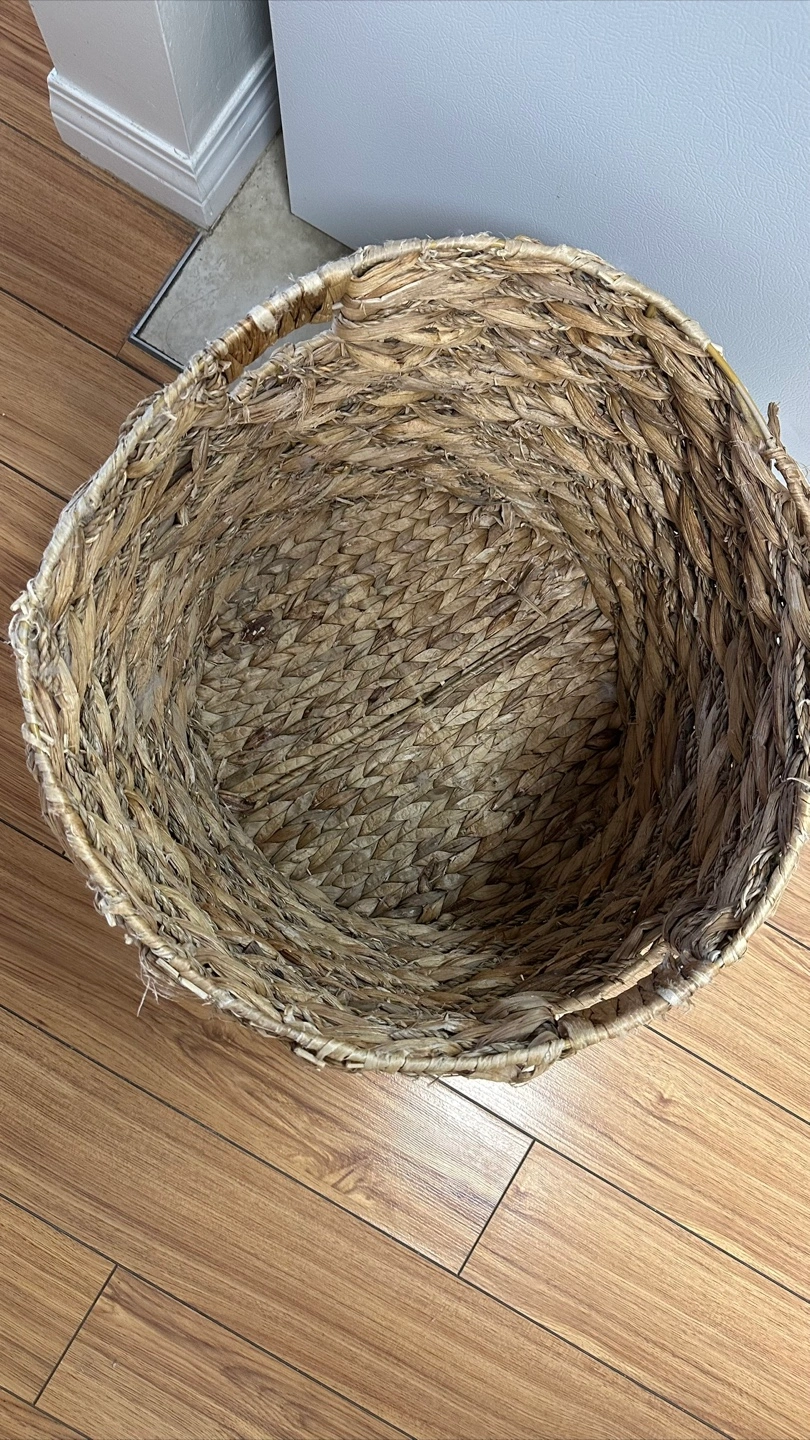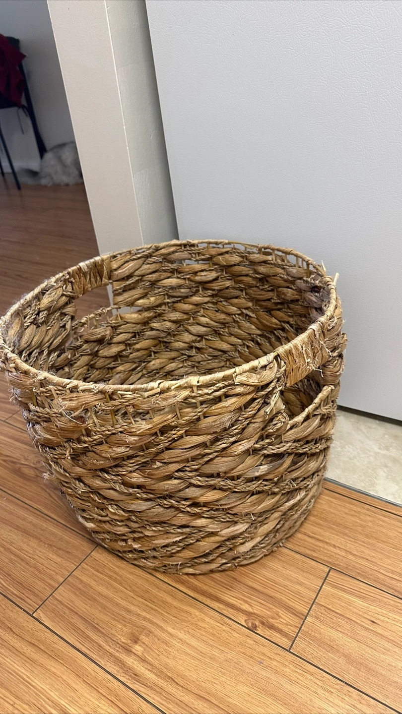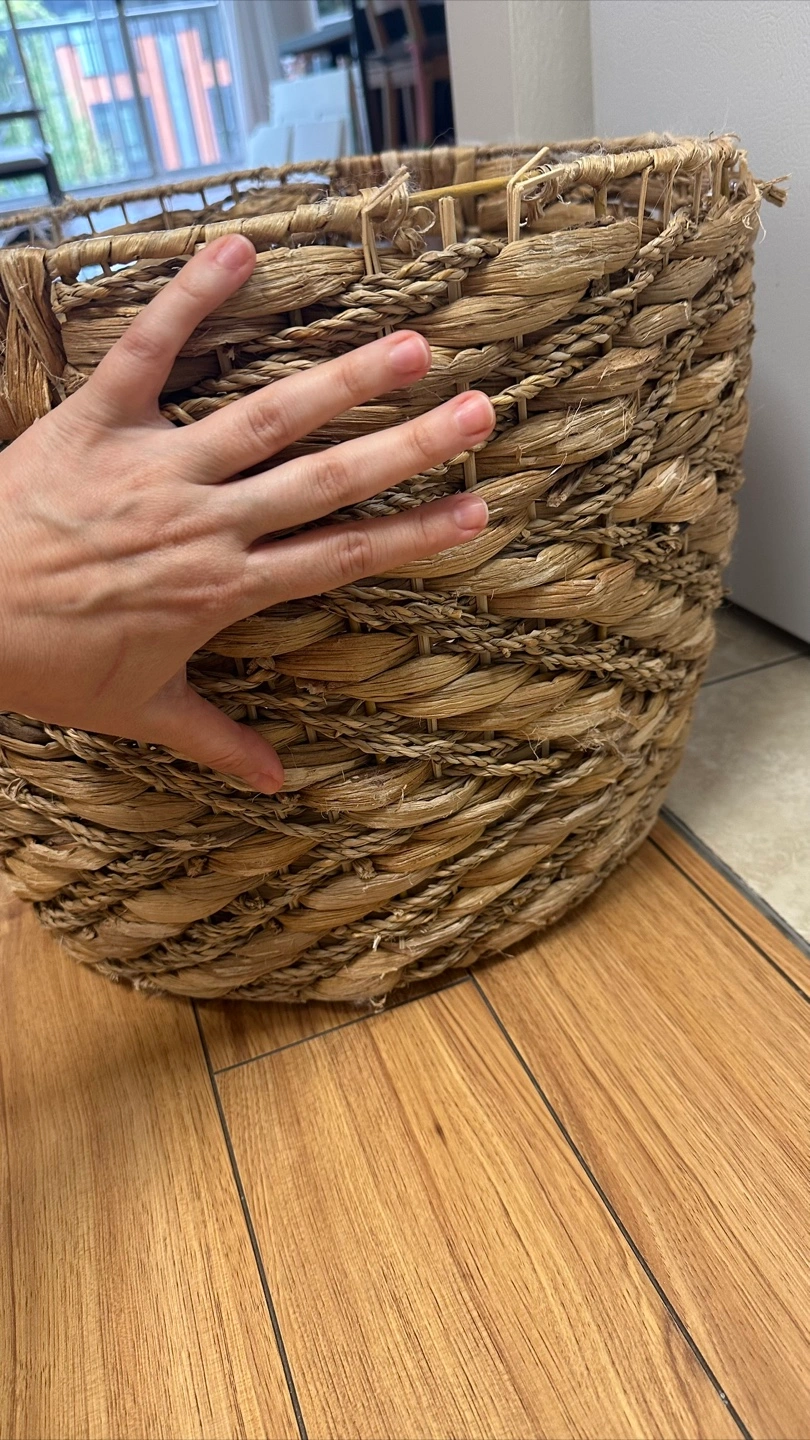 Selling a woven basket! It's in great condition and perfect for storage or decor. It's a natural colour and a good size for many uses