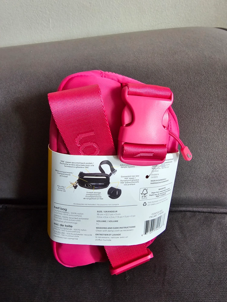 BNWT Adjustable strap (Minimum 50.8 cm/ 20 in. – Maximum 101.6 cm/ 40 in.) 2 compartments YKK® zipper-secured back pocket Main compartment with two-way YKK® 3 mesh storage compartments Key clip Made in Cambodia Outer fabric: 100% nylon Coating: 100% polyurethane Lining: 100% recycled polyester Coating: 100% polyacrylate Dimensions: 19 x 12.7 x 5 cm (7.5" x 5" x 2") 1 L capacity Clean with a damp cloth as necessary FINAL SALE Accepting cash only please