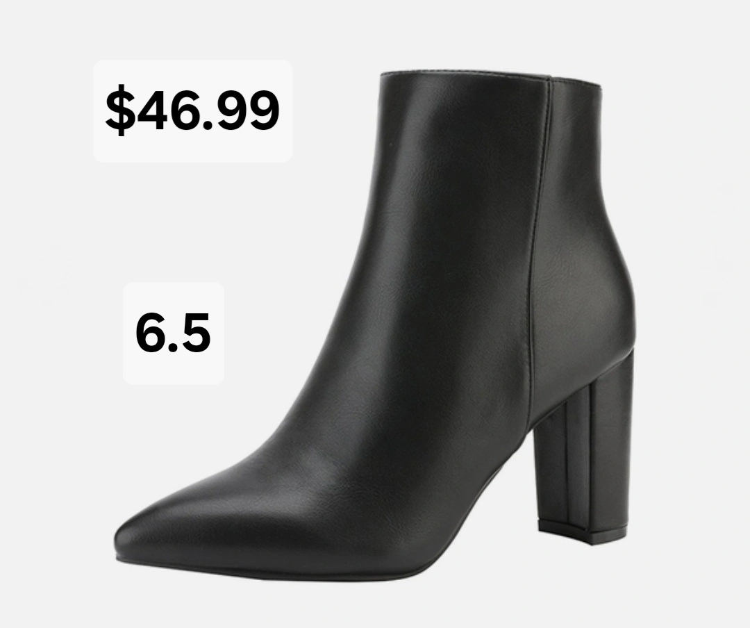 Selling a pair of Sianna-1 ankle boots in black! They are size 6.5. The heel height is 3.5 inches. They are made of PU and come with the original box. sells for $46.99