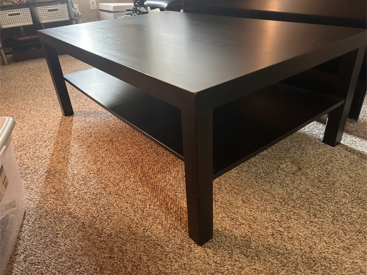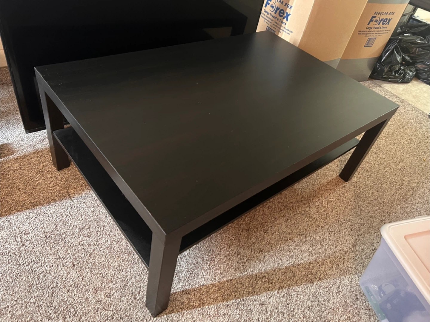 Rush!rush!rush! Moving out sale! Selling a black Ikea Lack coffee table. It's in great shape and ready for a new home! Perfect for your living room or den. The table has a handy shelf underneath for storage or display For pickup only.