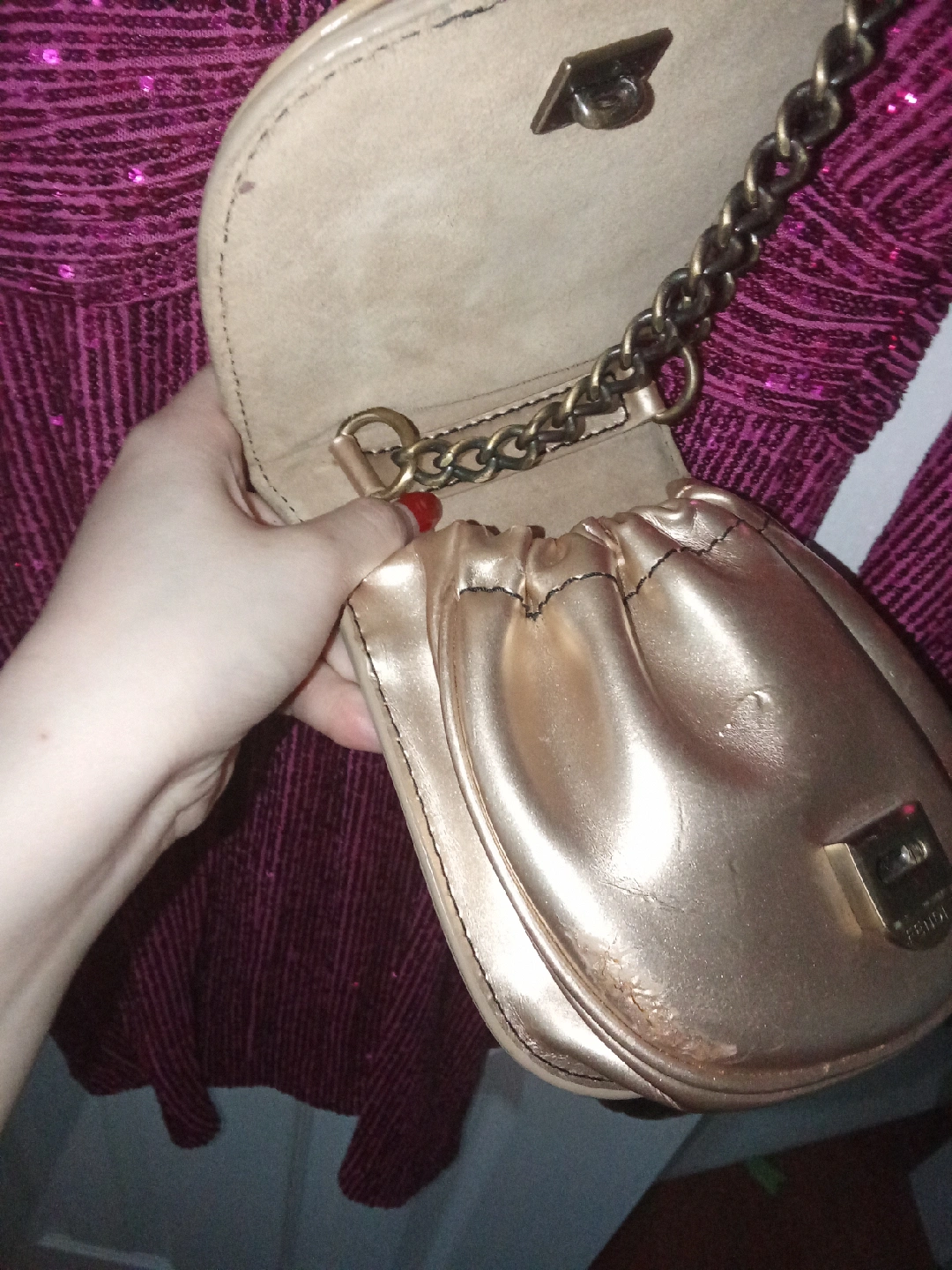 Selling a cute Fendi First Micro bag in gold leather! It has a chain strap and the Fendi logo. This stylish little bag is perfect for carrying your essentials. $60 Authentic vintage fendi mini bag. Come with authentic card. Beautiful champion gold colour. Condition is as photo. But the price is great for a authentic fendi bag.