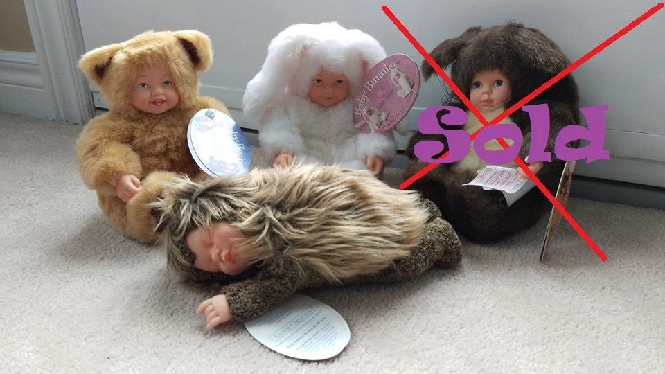 Located in OSHAWA ... Ritson Road North and Taunton Road area *** $40 (FIRM) each ... or $100 (FIRM) for all 3 *** BRAND NEW with TAGS Anne Geddes 7" Baby Bean Filled Collection Left To Right: Bear (Model: 525911 ; Year: 1998) Bunny (Model: 525901 ; Year: 1998) Squirrel (Model: 525971 ; Year: 1999) [ *** SOLD *** ] Front: Hedgehog (Model: 526921 ; Year: 1999)