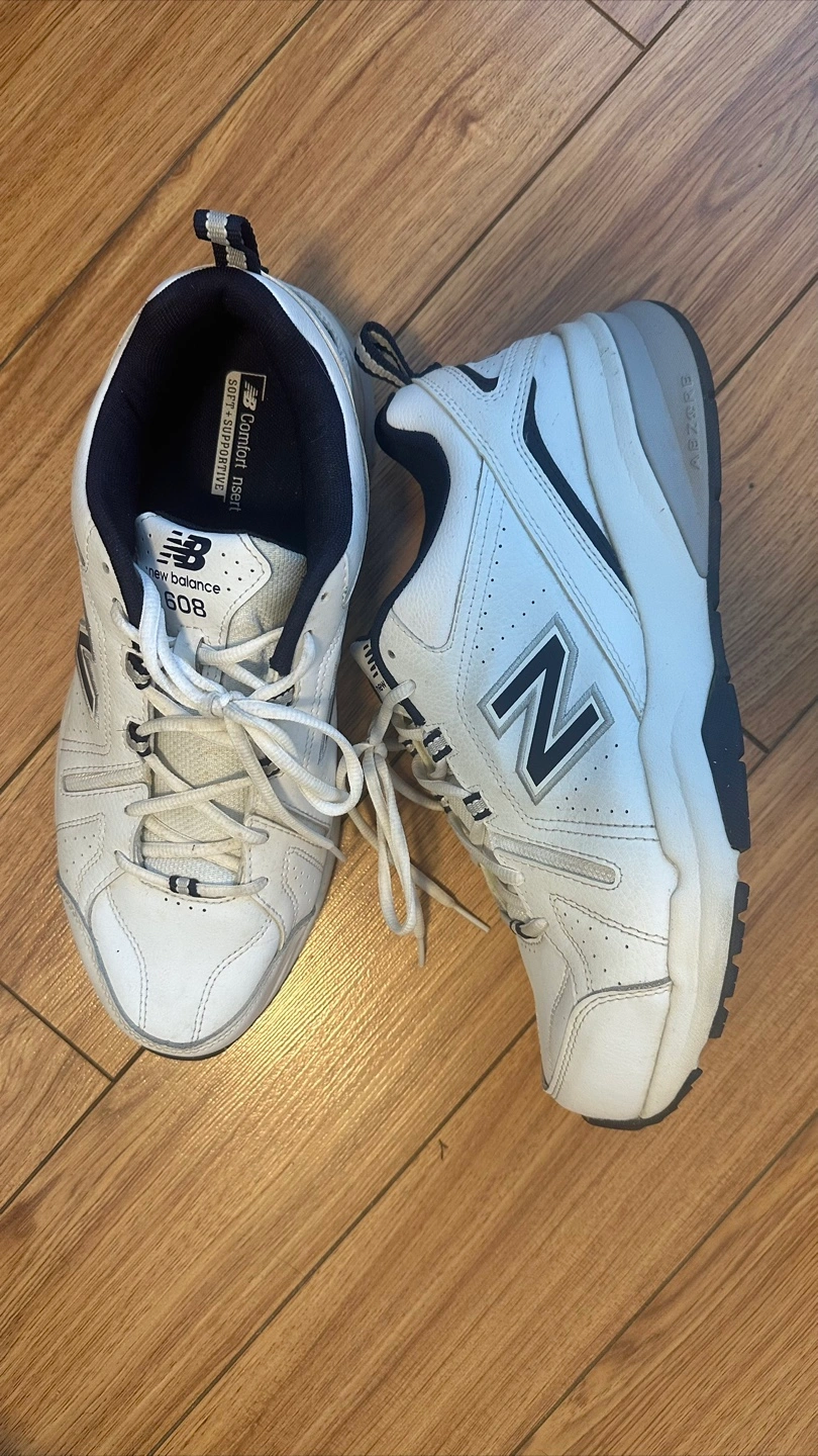Like new! Selling a pair of New Balance 608 training shoes in white. They are a US size 12. These shoes feature a comfort insert and supportive design. Perfect for workouts or everyday wear!