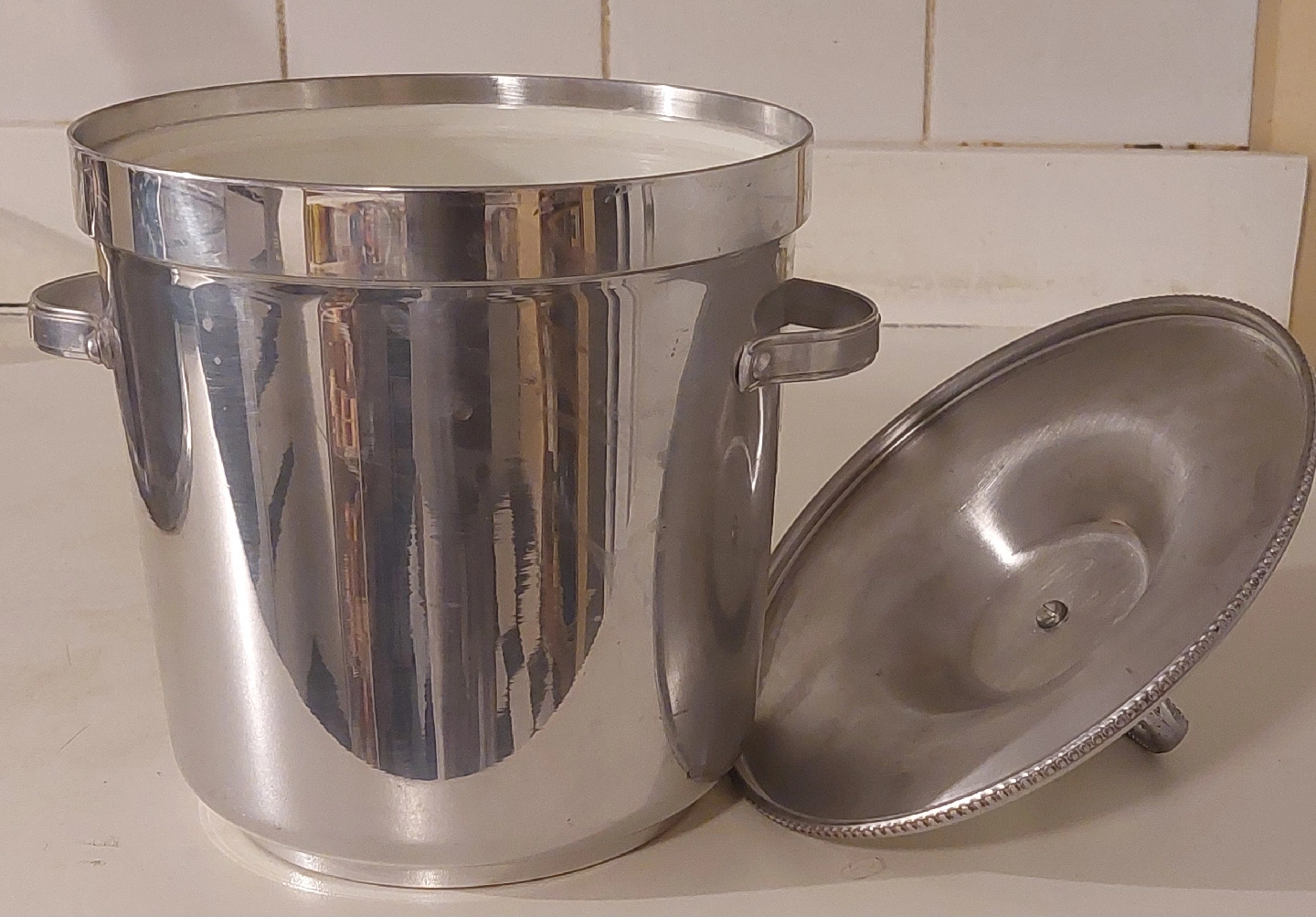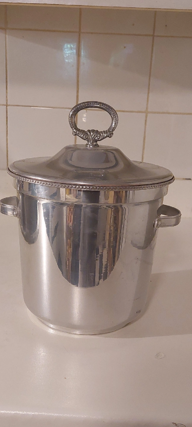 Selling a lovely vintage silver ice bucket complete with a lid! It's in great condition and ready to keep your drinks chilled. Perfect for parties or just adding a touch of elegance to your home bar