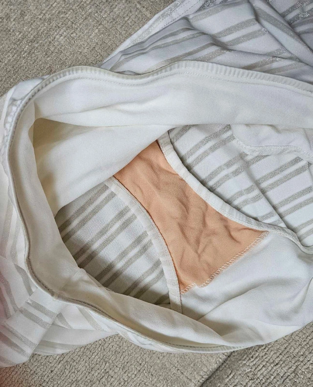 Size Medium Lined inside so isn't see through Located in Aurora