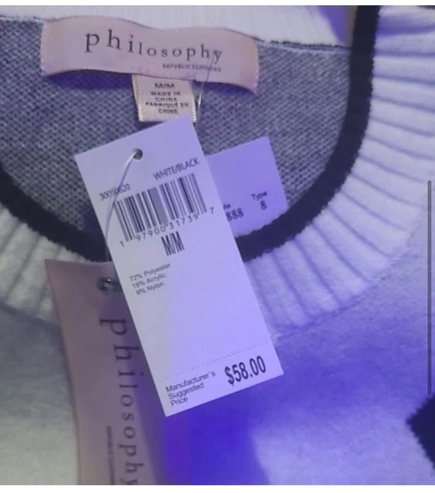 New with tags PHILOSOPHY Republic Clothing Soft New Sweater Black Heart Pattern Size Medium