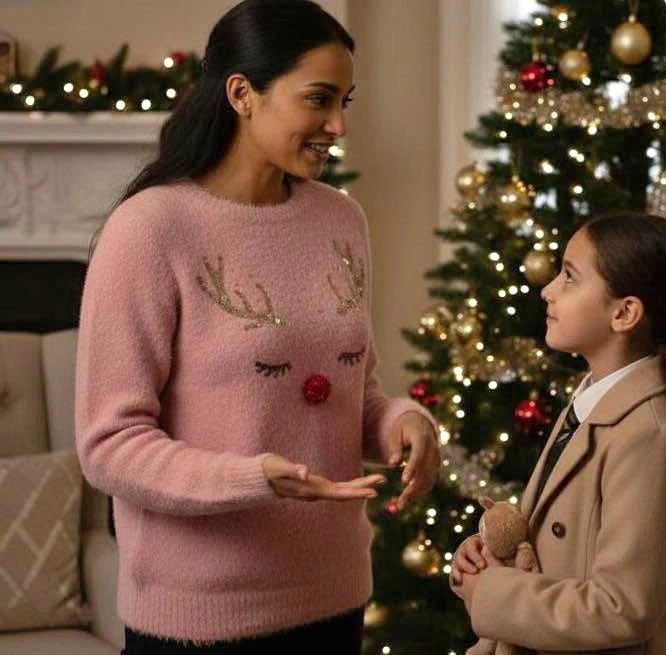 Lipsy Pink Crew Neck Sweater with Reindeer Design new with tags size Medium