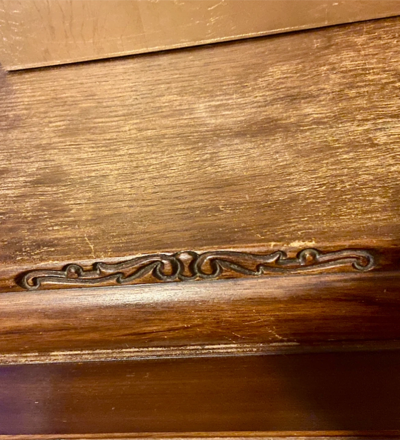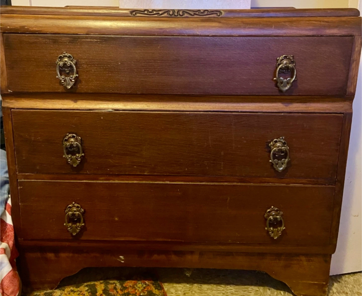 Beautiful antique dresser smaller at 17” x 18.5x28” Dovetail drawers . I believe yhe drawer pulls are brass . I was told most like this is a Henredon piece but I haven’t seen any markings . Drawers stick but they open and close and may just need some wax on the slides Really pretty piece. Moving . Come get her !