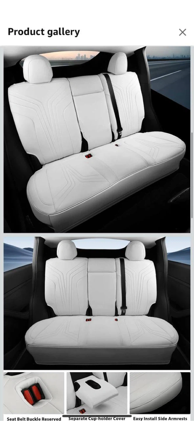 🚘 FREESOO Seat Covers for Tesla Model Y 5 seats(2020–2024) – White | New – $170 ✨ Perfect Fit & Premium Look Custom-fit full seat cover set designed specifically for Tesla Model Y (2020–2024, 5 seats). Made from high-quality faux Nappa leather (10 mm padding) — soft, durable, and stylish. 🛡️ Enhanced Protection Protects original seats from scratches, stains, fading, and spills. Easy to clean — just wipe with a damp cloth. 3/5 foam padding ensures maximum comfort during long or short drives. 💺 Full Functionality Compatible with airbags, seat belts, armrests, and adjustments. Rear armrest cover included. Keeps factory comfort and safety fully functional. 🎨 Colour: White 🧩 Material: Faux Leather 🚗 Fitment: Tesla Model Y (2020-2024, 5 Seats) 📦 Condition: Brand New 📍Pickup in Waterloo ✅ See my other listings for more automotive accessories!