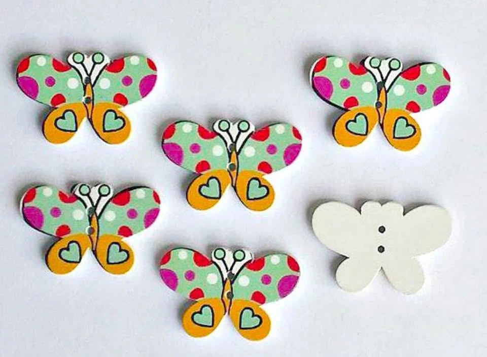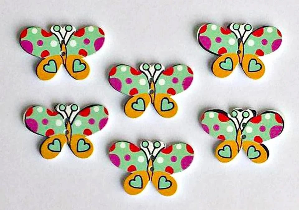 Cute green and yellow butterfly buttons. Butterfly embellishments for your creations. These are of high quality and are sure to be a conversational piece. Measurements Approx: 30mm x 20mm Hole Size: 1.5mm Holes: 2 Listing is for a set of 12 wooden butterfly buttons :) Check out my other listings for more supplies!