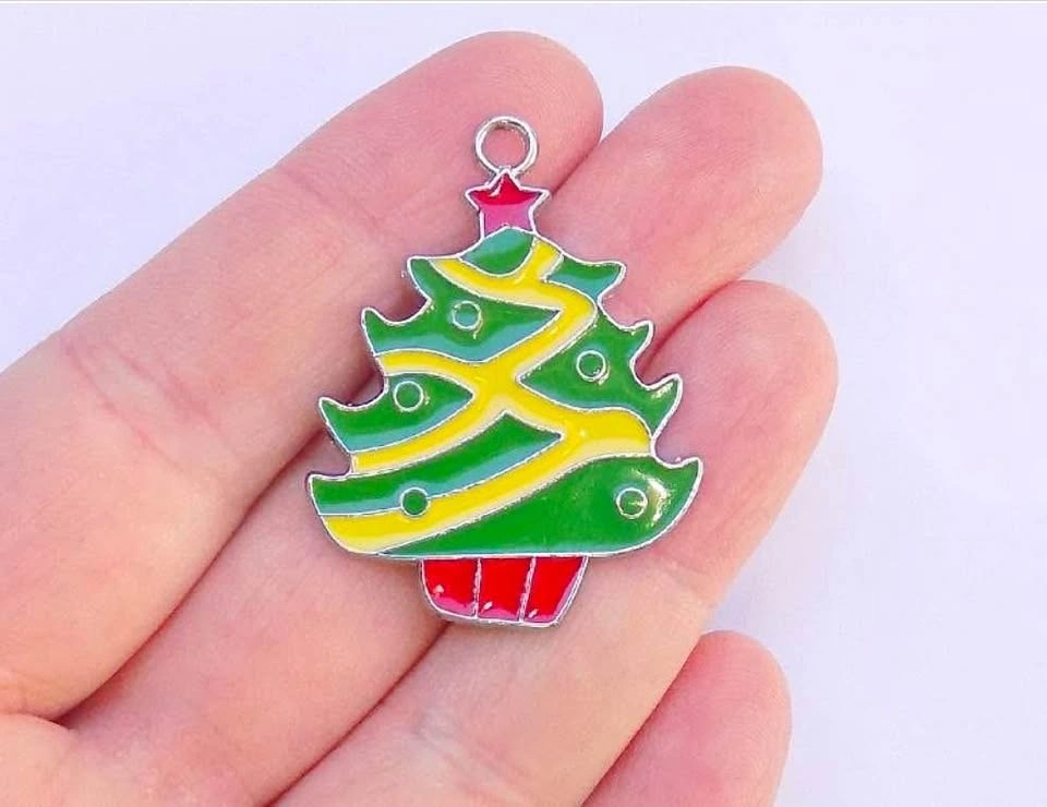 Here are some enamel Christmas tree charm pendants. These would be great for any Christmas project that you have in mind for anyone who loves Christmas! Size: 38mm x 29mm Listing is for the quantity of 4 of these Christmas tree charm pendants :) 7 sets of 4 available $2 per set Have a ๐ at my other charm listings!