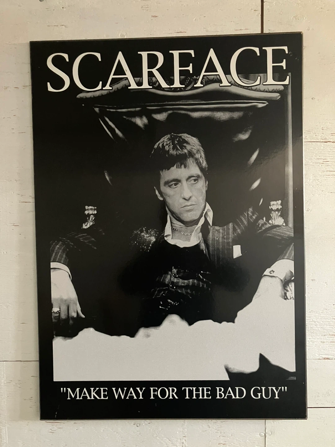 Selling a Scarface poster featuring the iconic line "Make Way For The Bad Guy"! It's a great piece for any movie fan or collector. The poster is in good condition and ready to be displayed