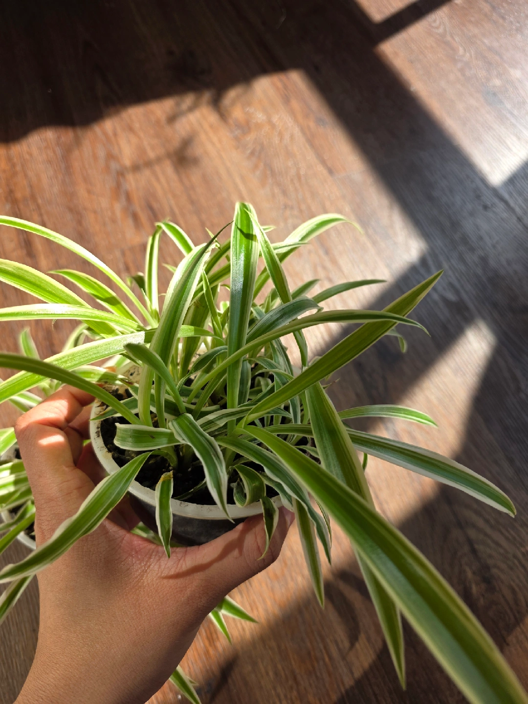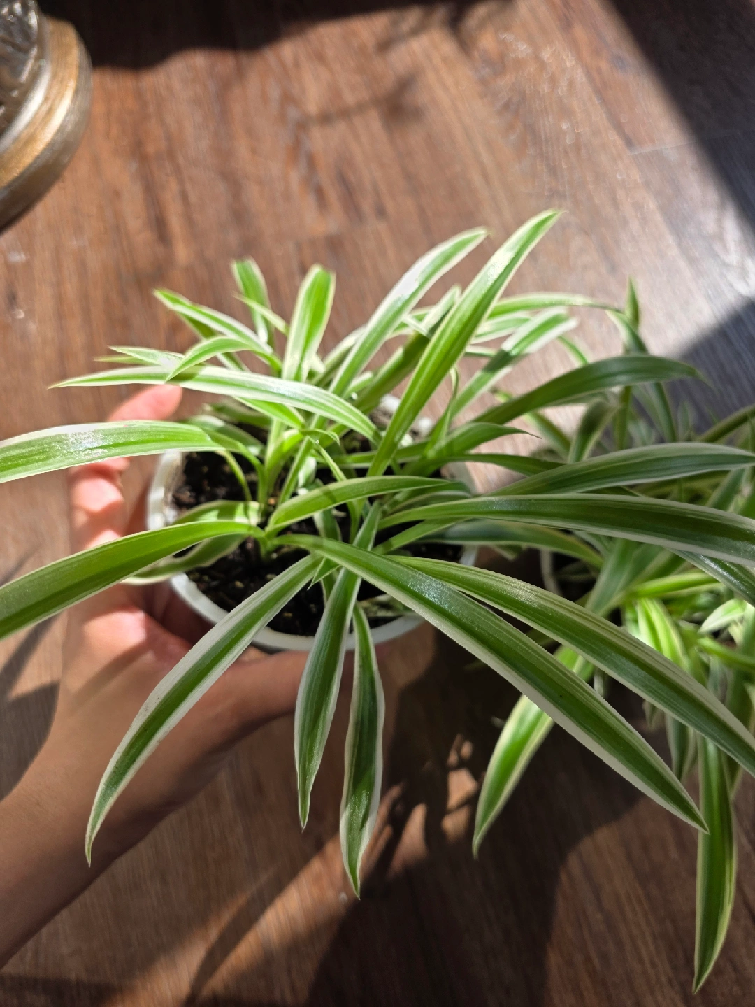 Two clear plastic pots of small to medium spider plangs. It's a healthy plant and would be a great addition to any home. Very low maintenance. Price for both pots.