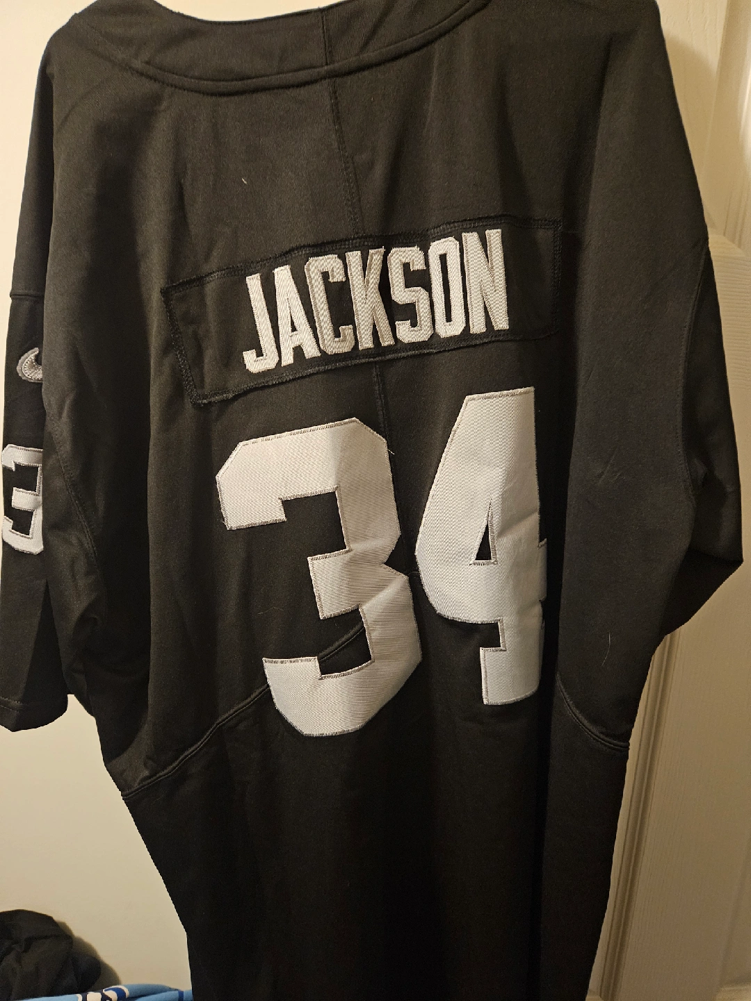 Selling an NFL Raiders jersey with Jackson #34 on the back. It's a size XXXlarge and in great condition! Perfect for any Raiders fan. worn for a few minutes only so just like new! fully stitched Nike jersey