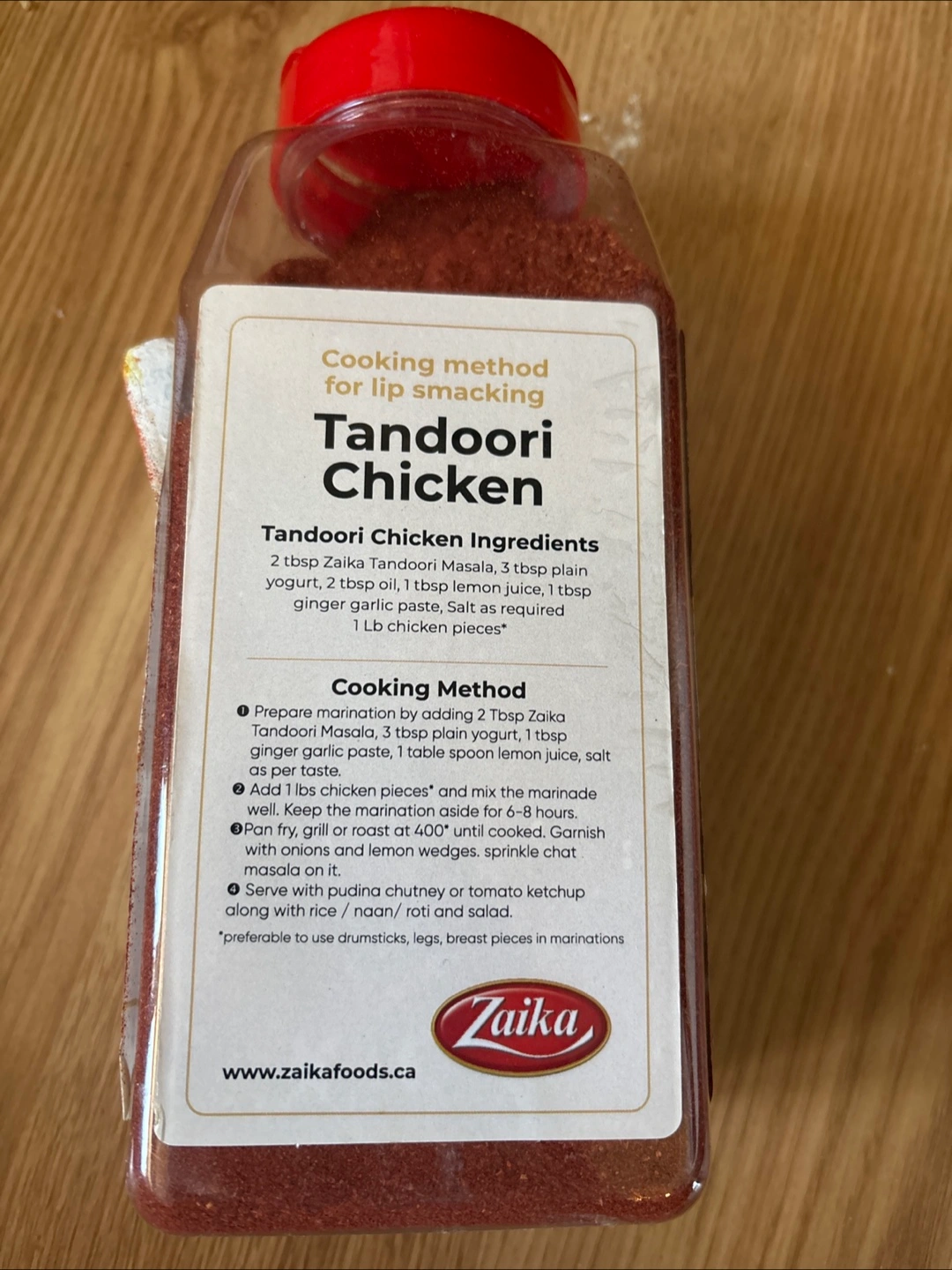 Selling a container of Zaika Tandoori Masala. It's perfect for adding a delicious and authentic flavour to your chicken and other dishes. The container has a net weight of 700g (24.69 oz). Ingredients include red chillies, coriander, cumin, garlic, and more! Ideal for BBQ spices. Only used it a few times.