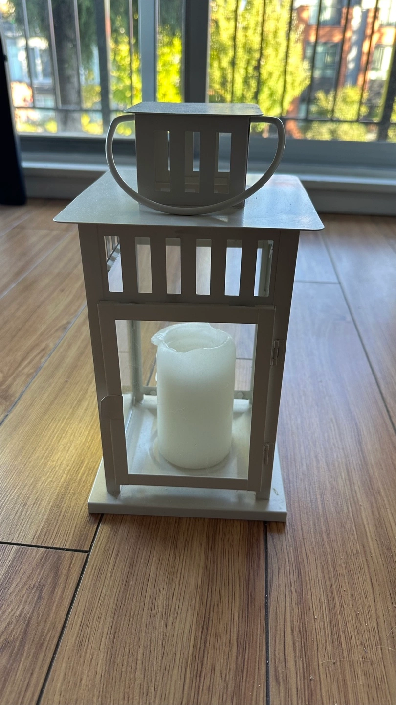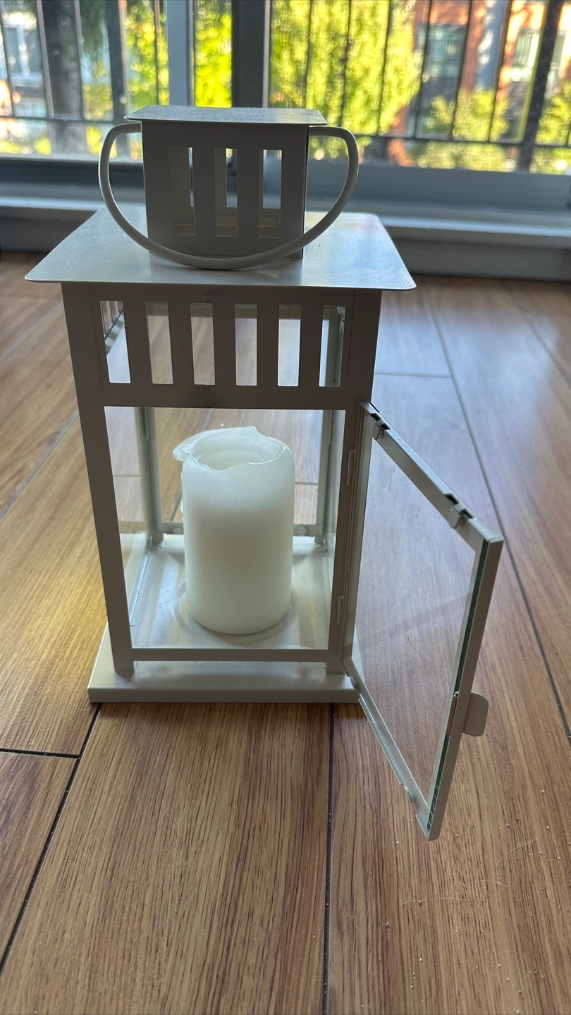Selling a white IKEA BORRBY lantern for block candles. It's in great shape and ready to add some cozy light to your space! The lantern is suitable for both indoor and outdoor use.