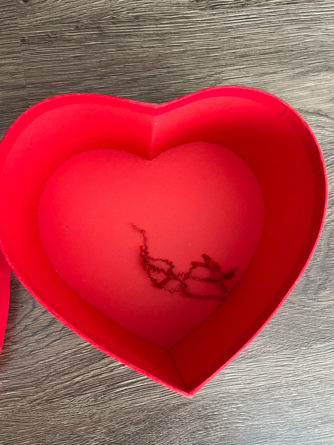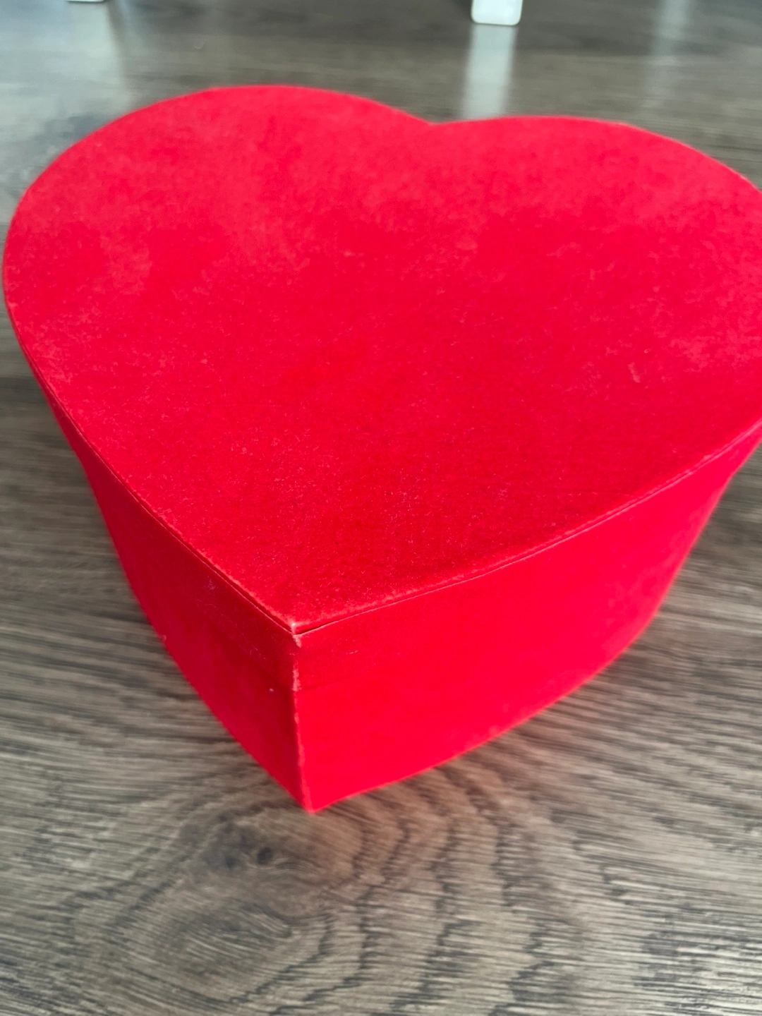 A cute red heart-shaped box, perfect for storing small items or gifting! It's in great condition and ready for a new home