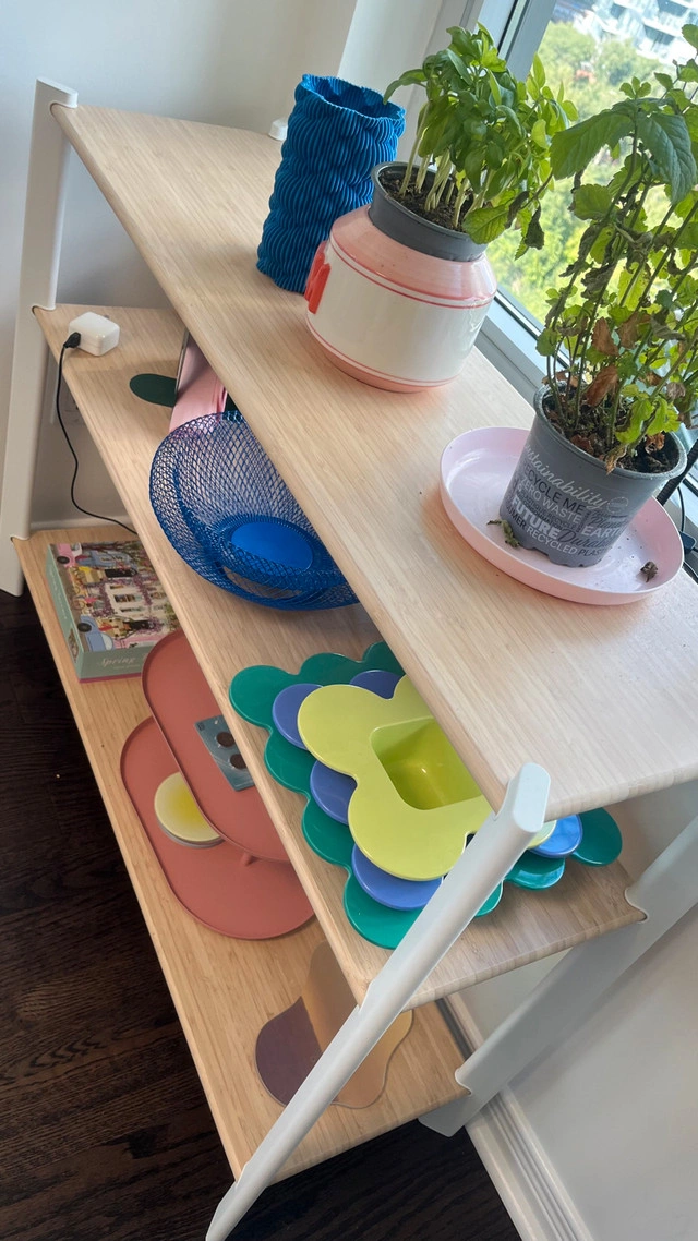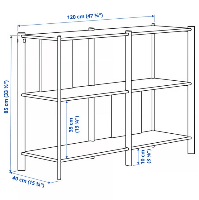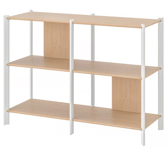 Add stylish and practical storage to any room with this used JÄTTESTA shelf unit in white and light bamboo. This shelving unit offers a clean and modern look, perfect for displaying books, plants, or decorative items. The unit has three shelves and is in good condition. Here are the specifications: * Three-tier shelving unit * Colour: White/light bamboo * Stylish and practical design