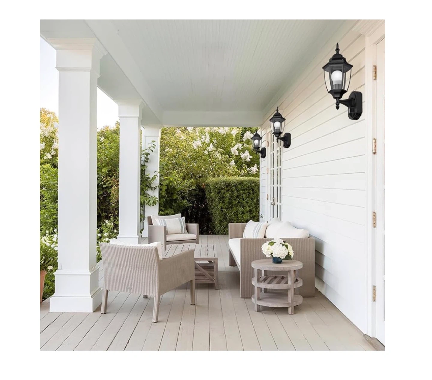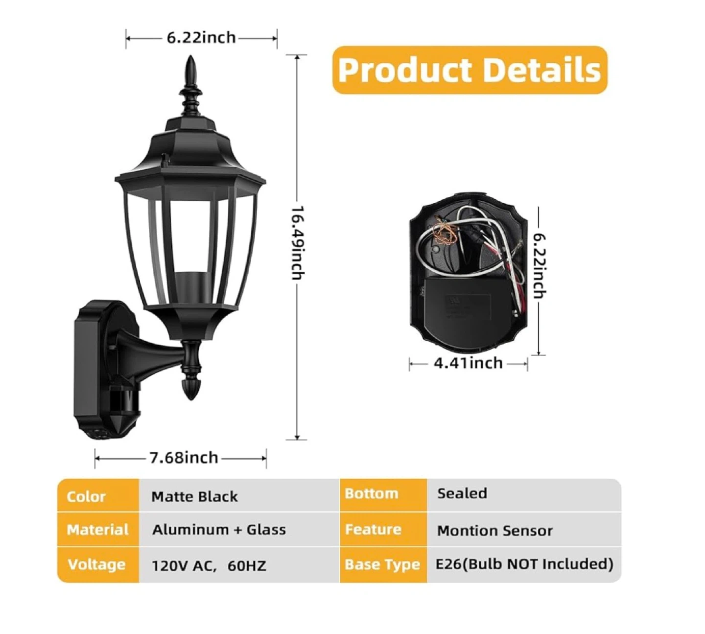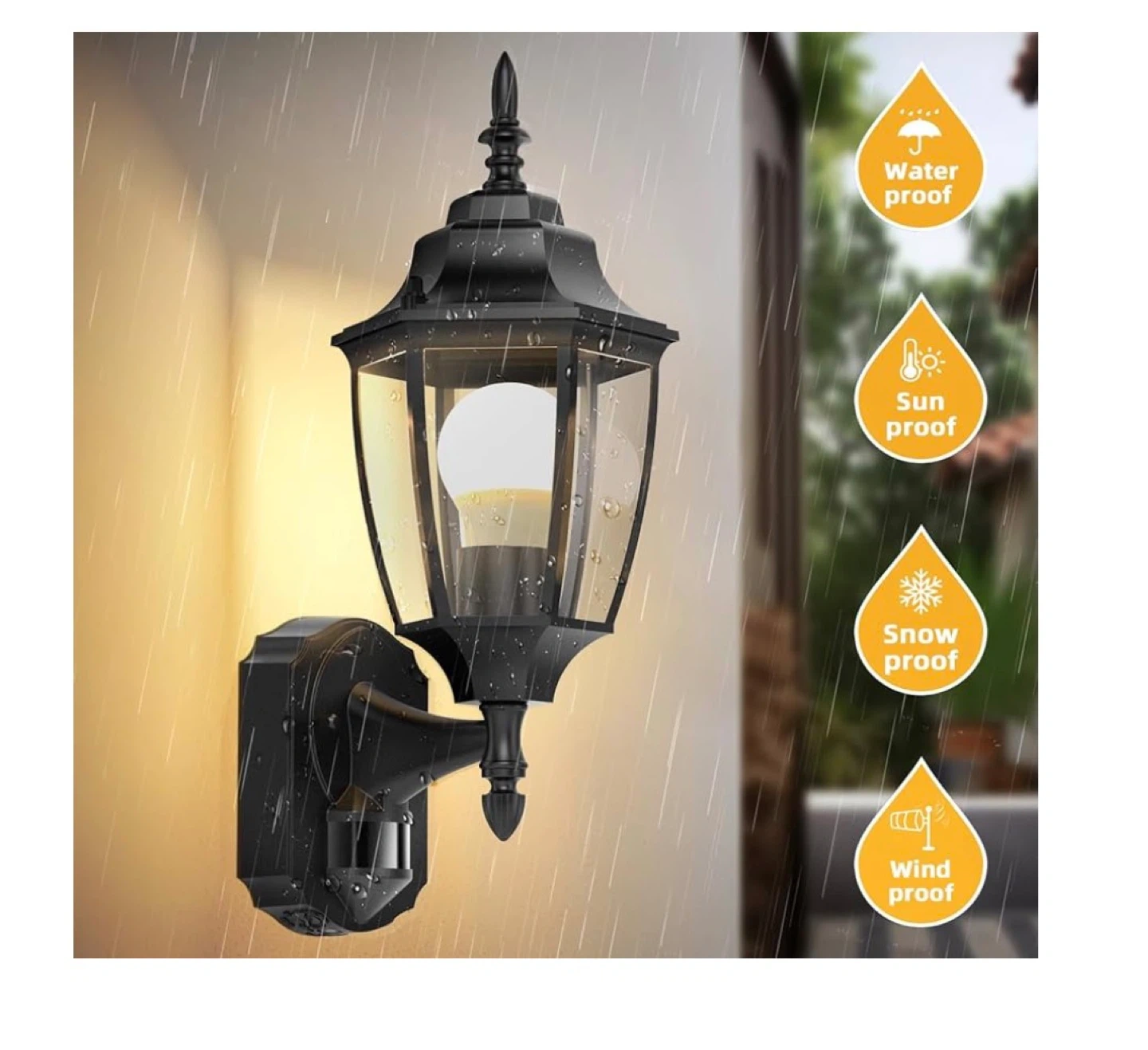 2 pack This outdoor wall light has an advanced PIR motion sensor with adjustable lighting time. It can detect motion at a distance and angle of 30ft and 180°. It features 3 lighting modes: automatically turn off at day, PC mode (dusk to dawn sensor), and automatically turn on at night. It's also waterproof, sunproof, snowproof, and windproof