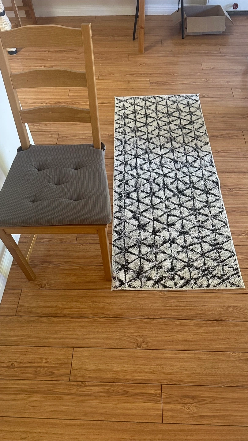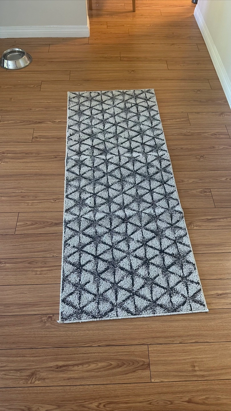 StyleWell Fitch Bay Clipper 24-inch x 60-inch Indoor Area Rug Selling a patterned area rug. It features a geometric design in black and white. It's in good condition for adding some style to your space!