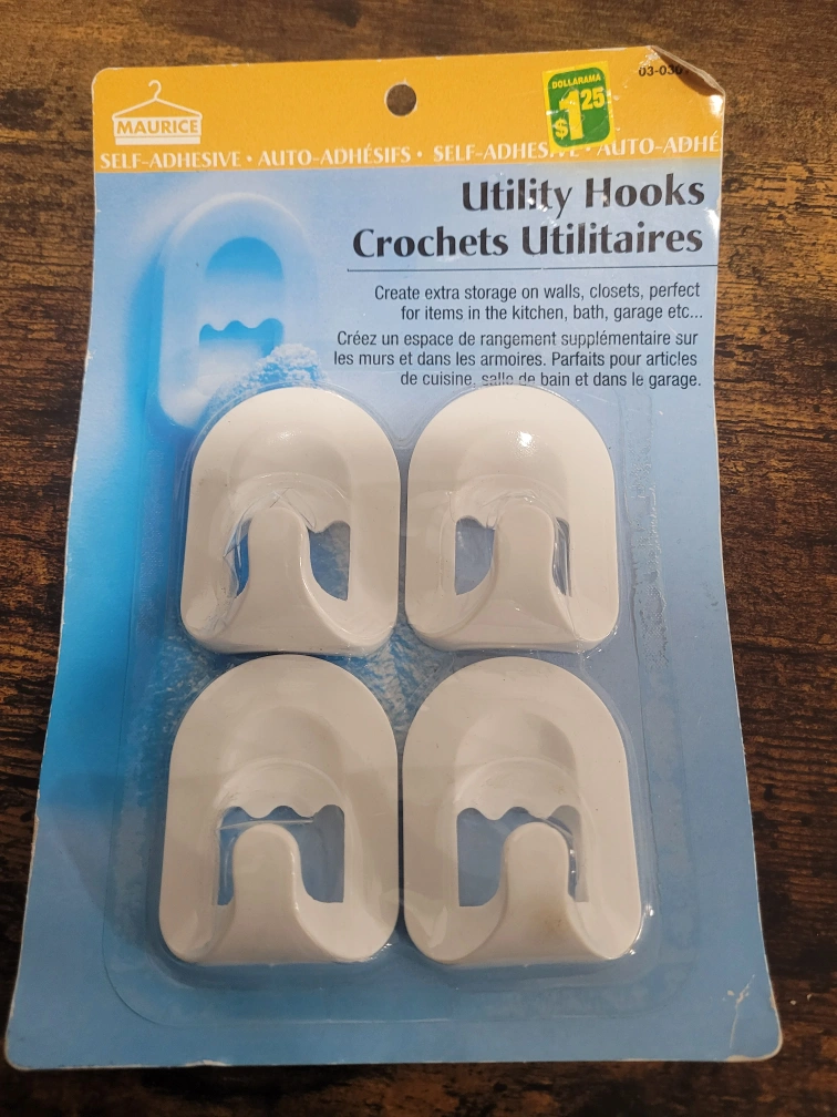 These Maurice Utility Hooks are perfect for creating extra storage in your kitchen, bathroom, or garage! They are self-adhesive and easy to install. New in package!