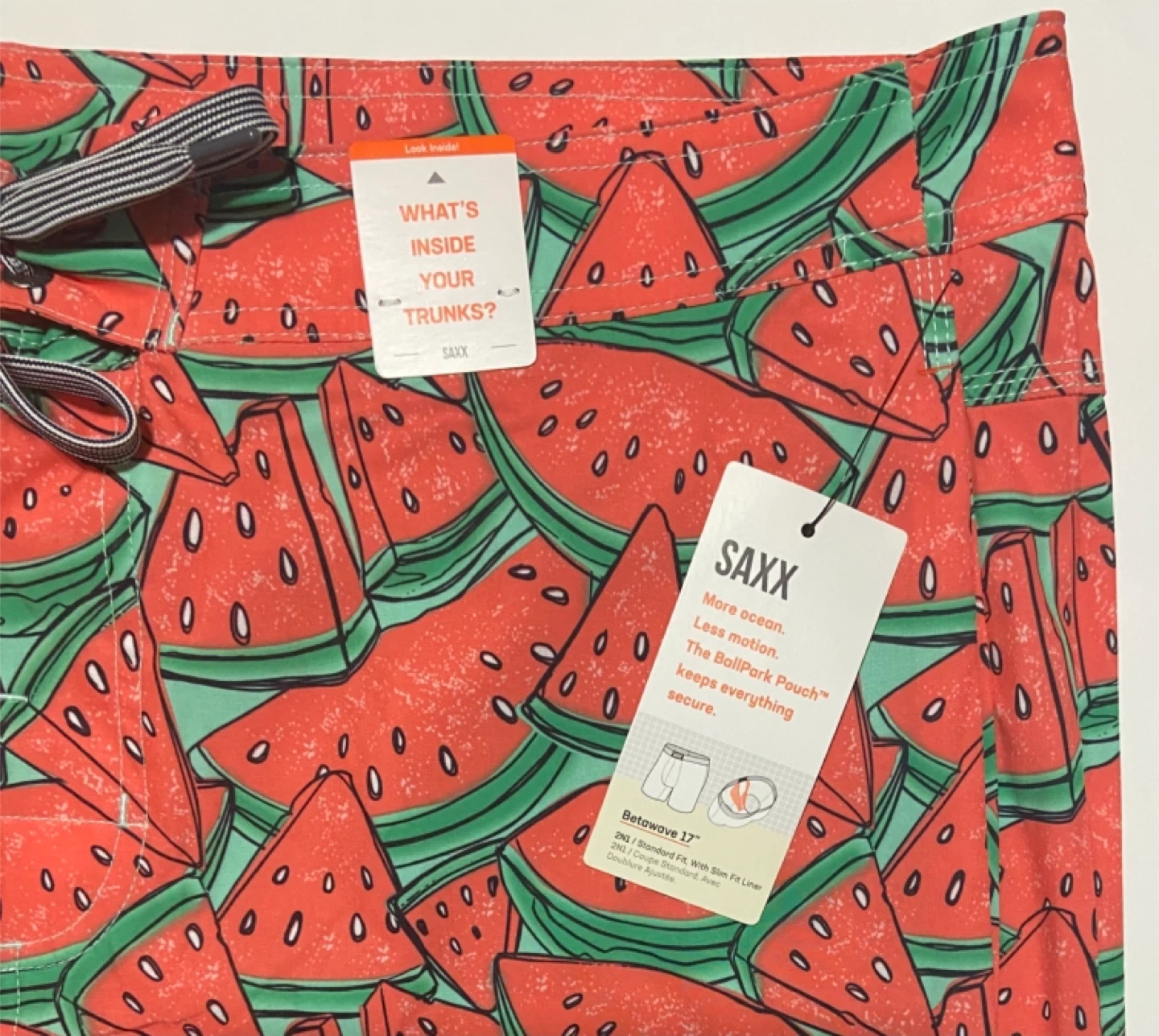 These SAXX Betawave 2N1 Boardie shorts are in excellent condition and feature a fun watermelon print! They're a size 40 and have a 17" length. Here are some features: - Liner with DropTemp™ active cooling system - 4-way stretch for quad flexibility - Fade resistant and quick drying - Security stash pocket - Odor resistant Original price $90