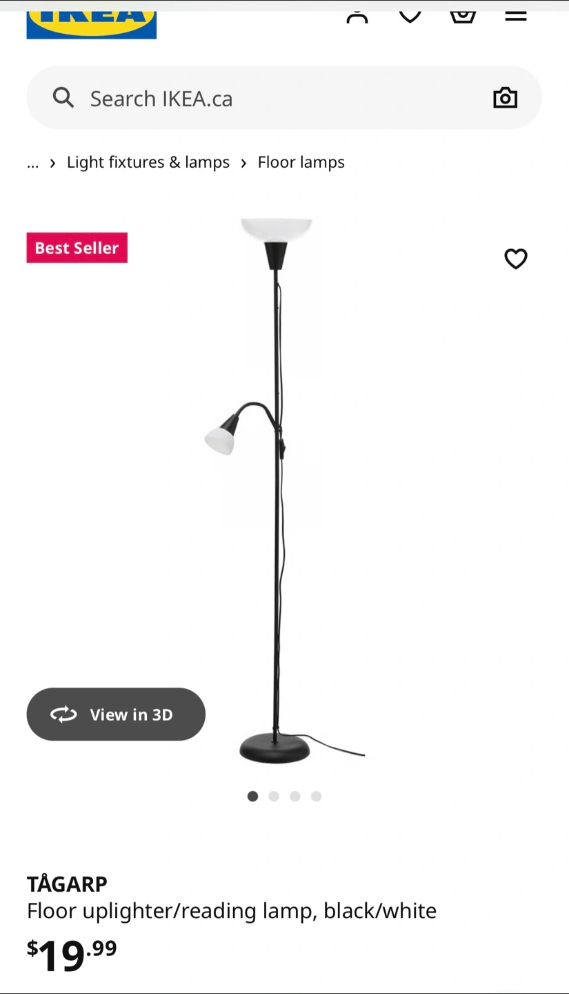 2pc uplighter Selling an IKEA TÅGARP floor uplighter and reading lamp in black and white. It's in great condition and provides both ambient and focused lighting. Perfect for any room!