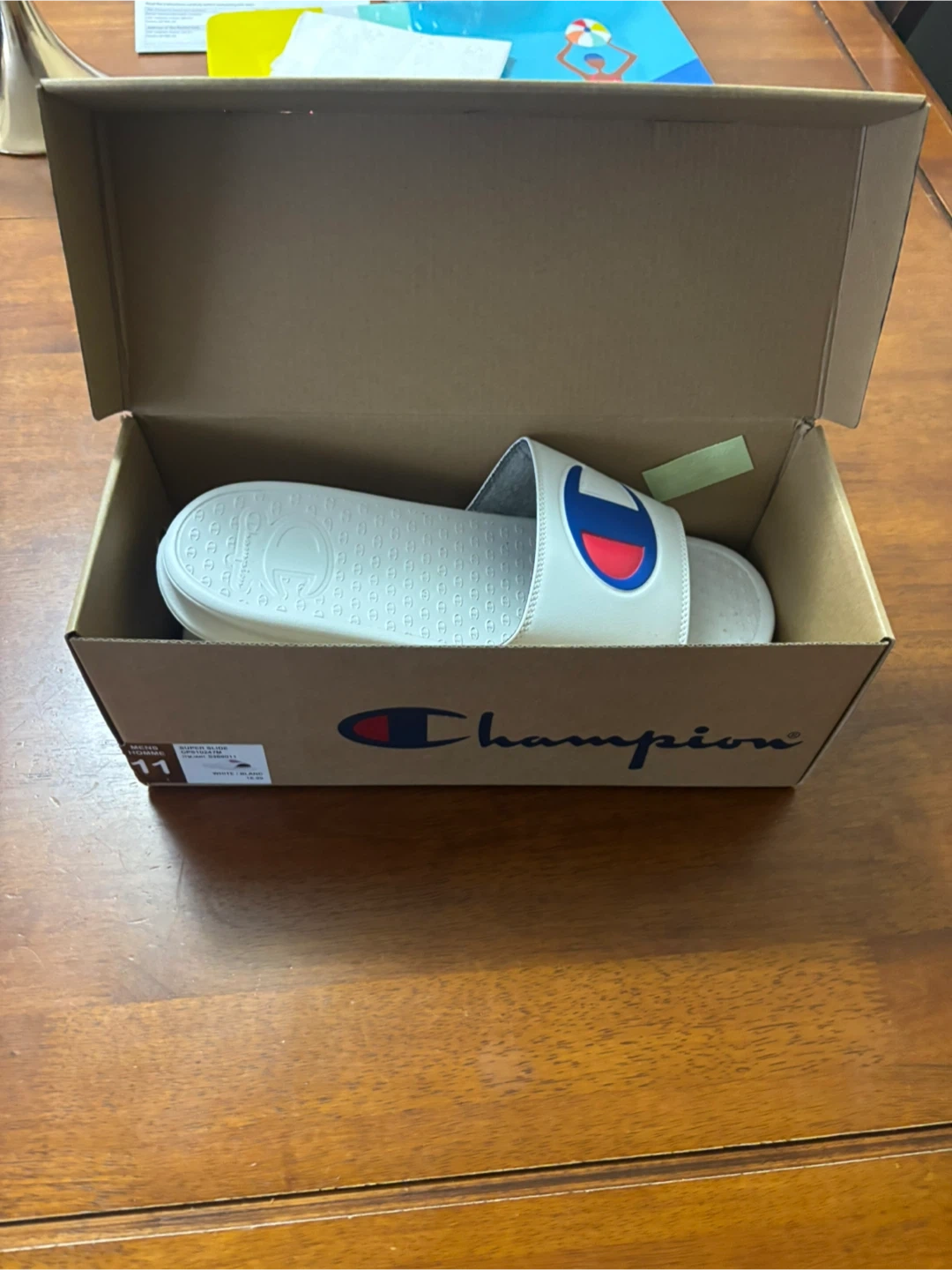 Selling a brand new pair of Champion Super Slides in white, size 11. These slides come in the original box. They are super comfy and perfect for summer!