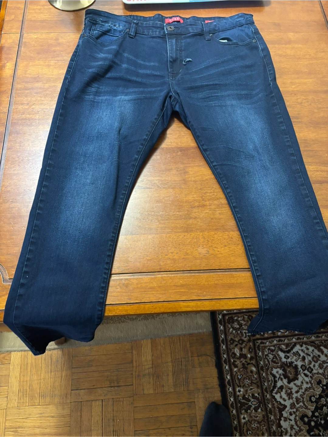 Selling a pair of Guess Los Angeles jeans in size 36x30. They are a medium rise skinny, scotch fit. Great for everyday wear!