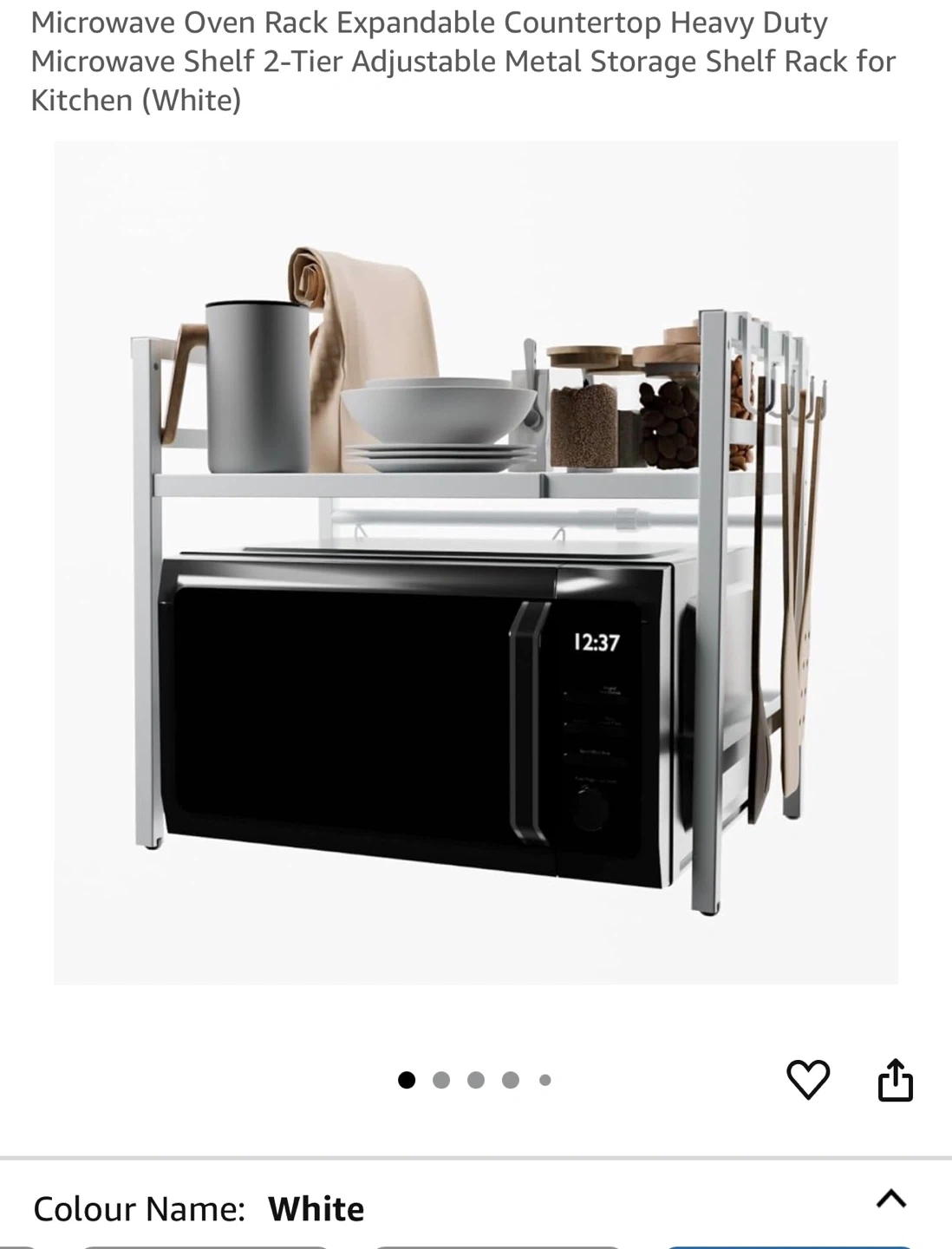 I'm selling a white expandable microwave oven rack! It's a 2-tier adjustable metal storage shelf, perfect for the kitchen. The length is adjustable from 13.4 inches to 23 inches, making it space-saving and versatile for any countertop