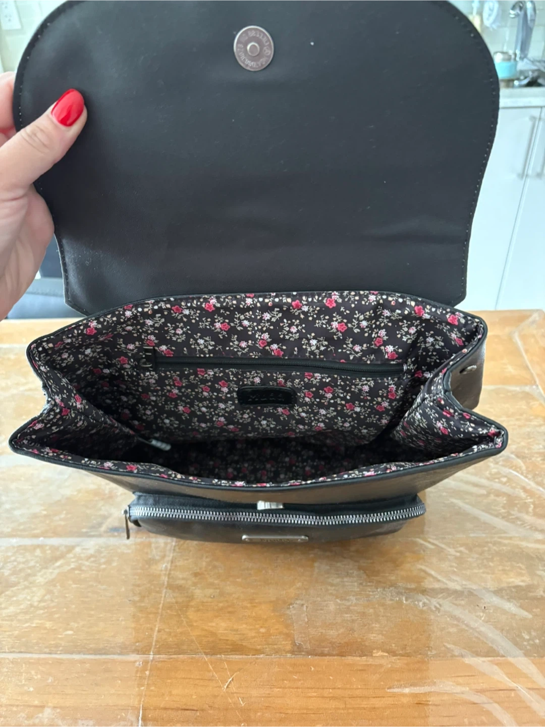 Selling a cute Mudd black backpack! It's in great condition and features a floral patterned lining. Perfect for everyday use!