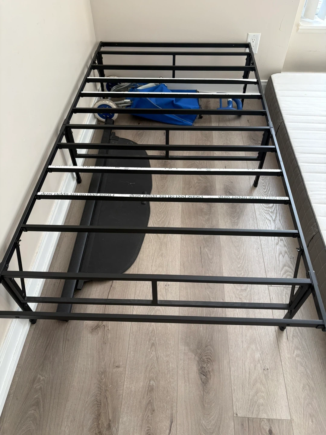 Selling a sturdy metal bed frame in black. It's in great shape and ready to support your mattress. Easy to assemble and disassemble for moving. Perfect for a simple and modern bedroom setup! It is twin size