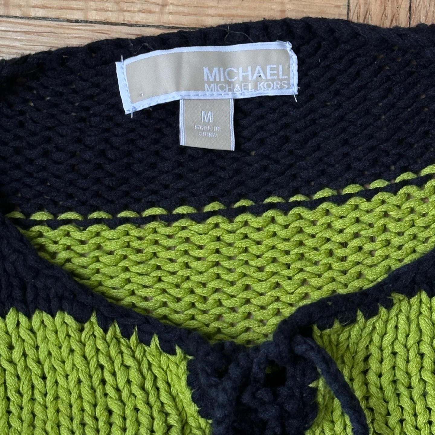 Cozy Michael Michael Kors sweater in a striking black and green striped pattern! It's made from 100% cotton and is a size medium. Perfect for adding a pop of colour to your wardrobe and staying comfortable Perfect conditions, you can see the defects in the photos. Pick up near Yonge and Bloor