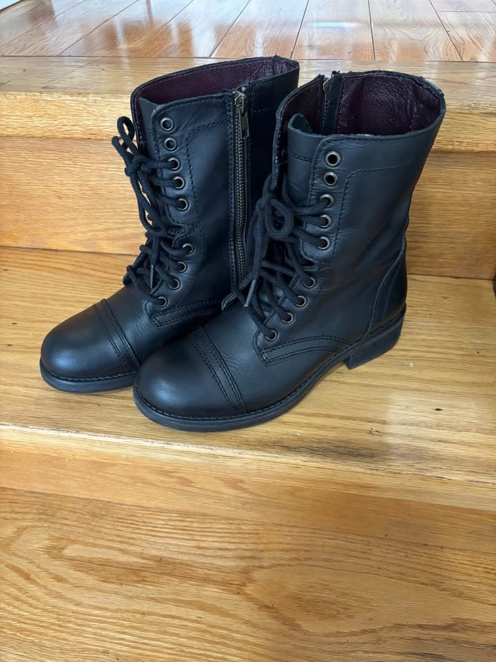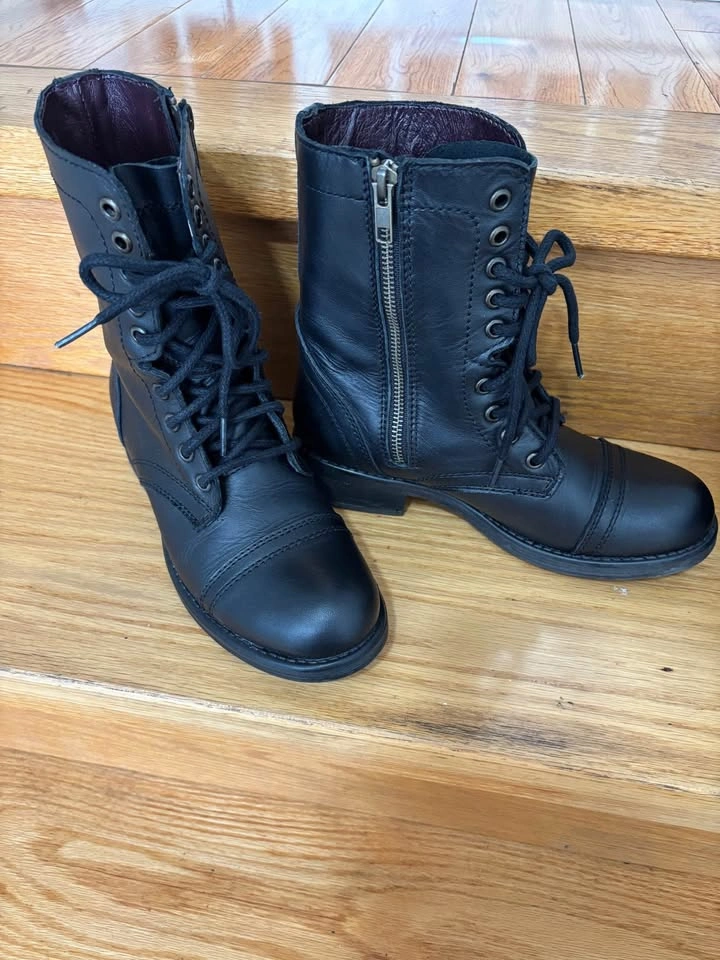 Steve Madden combat boots • Genuine Leather Upper, Lining, and Sock • Rubber Outsole • Black color • Laces and Zipper closure • Women’s Size US 7 (UK 37-38) Bought for $140