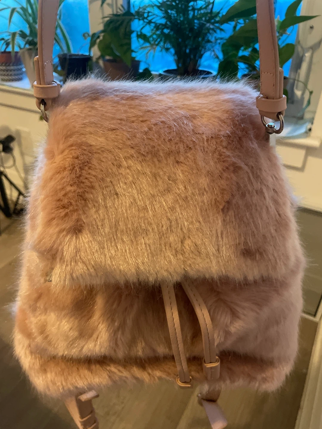 Selling a cute Zara Basic Collection backpack! It's a light pink faux fur material with adjustable straps. The interior is black and has a drawstring closure. Great for adding a fun touch to your outfit! Great for fall and winter gift!