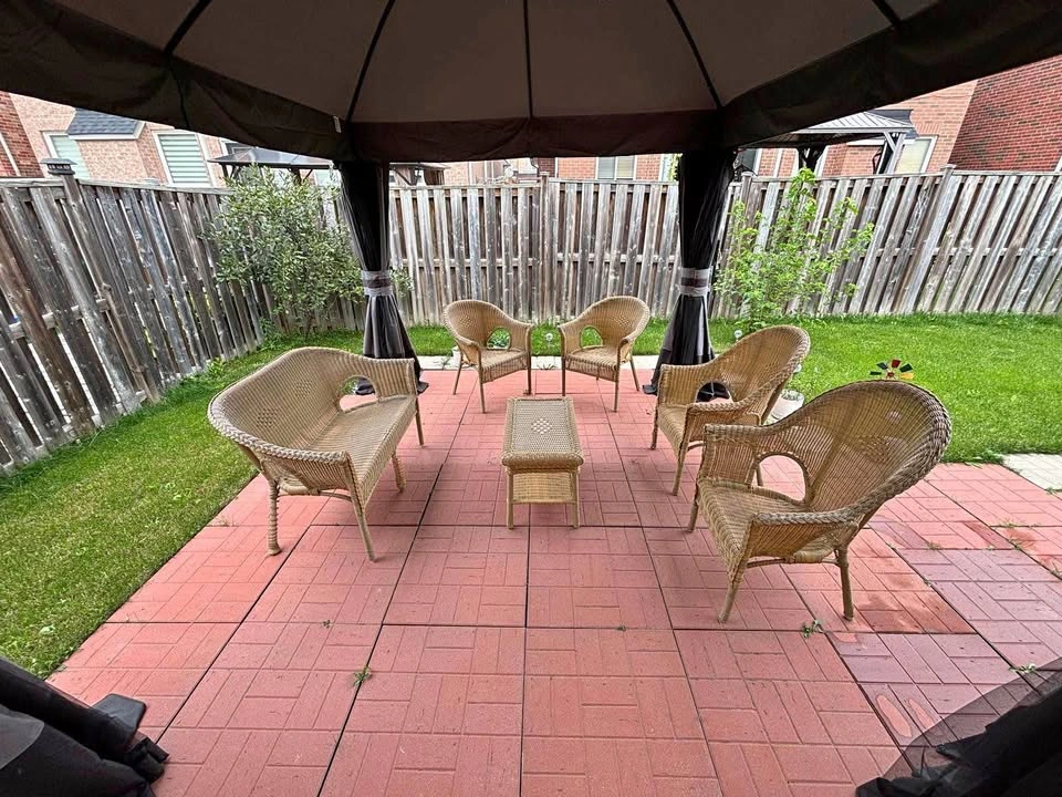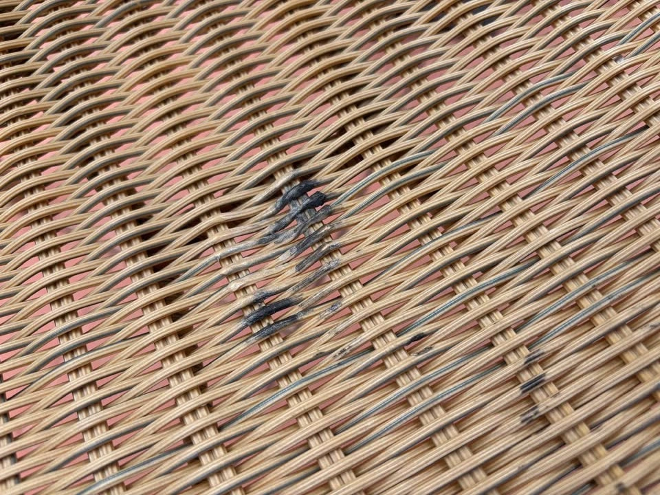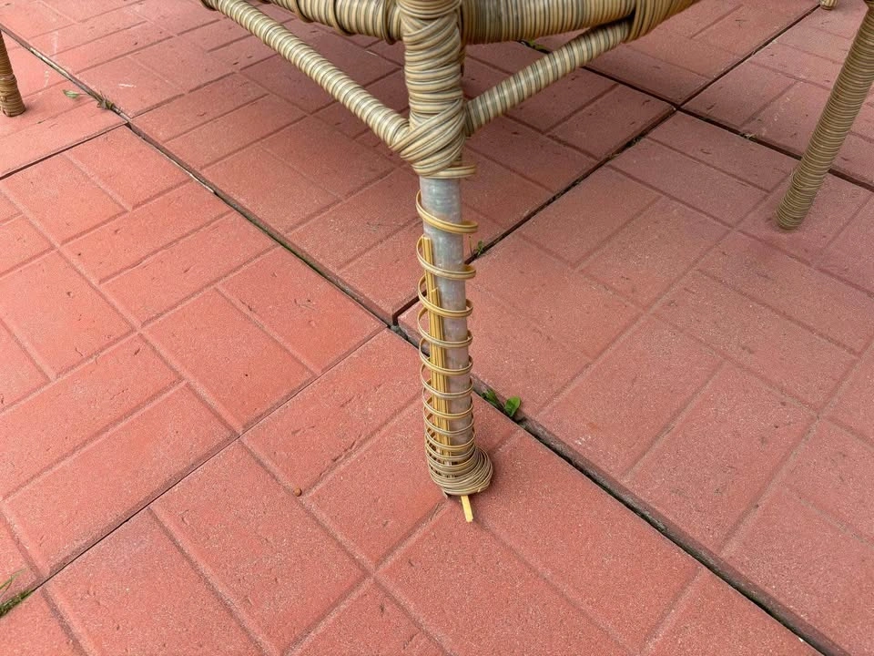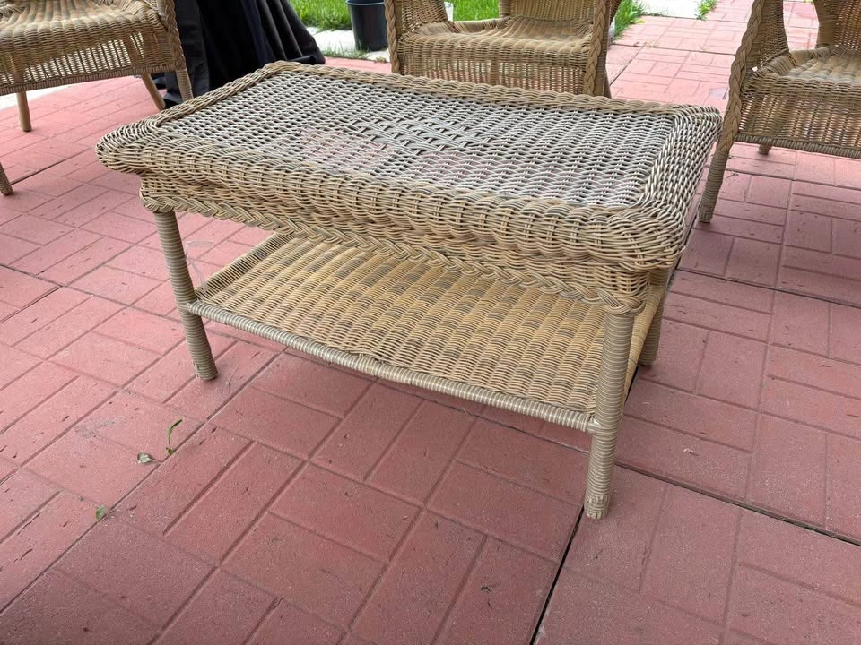 6pc. wicker patio furniture set - 2 armchairs - 2 convertible rocking chairs - 1 love seat - 1 table with storage shelf Comfortably seating 6-7 people