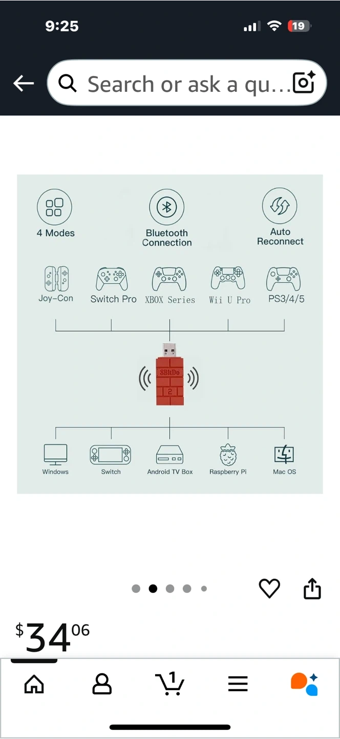 Selling a brand new 8Bitdo Adapter 2 USB Wireless Switch Controller! This adapter allows you to use various wireless controllers (like those from Xbox, PlayStation, and Nintendo Switch) on Windows, Mac, Raspberry Pi, and more. It supports Bluetooth 4.0 and is compatible with Joy-Con, Switch Pro, Xbox Series, Wii U Pro, and PS3/4/5 controllers. Originally bought for $34.06, it comes in its original box