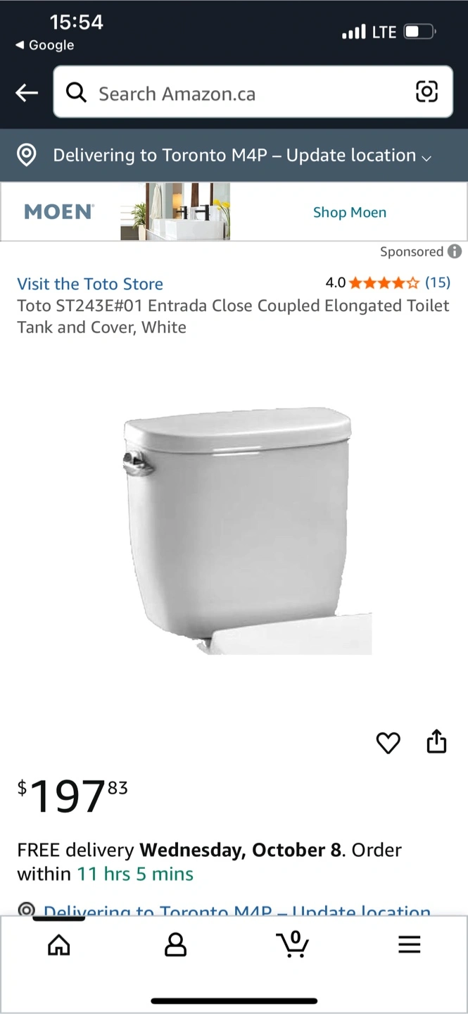 Selling a Toto ST243E#01 Entrada toilet tank in white. It's brand new and still in its original box. The tank features a chrome-plated trip lever. The color is #01 (Cotton). This is a 1.28 GPF (4.8 LPF) E-Max tank. Originally bought for $197.83