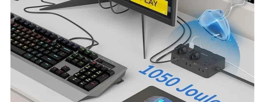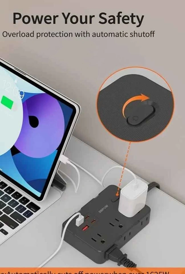 This slim 5 ft power strip turns 1 outlet into 10, with 6 AC outlets and 4 USB (2 USB-C) ports, allowing you to power 10 devices simultaneously. Compatible with laptop, PC, printer, TV, router, lamp, phone, watch, fan and more. It also has 8-fold safety protection -1050J surge protection, overload protection, over-current protection, short-circuit protection, over-voltage protection, overheat protection, grounded protection and flame-retardant. Designed with 2 mounting holes, this slim power bar can be mounted to the wall anywhere you choose. With 13A overload protection switch, it will automatically disconnect when it exceeds 1625W to protect the equipment safety. With only a 0.33-inch ultra-thin plug, it's easier to access any wall socket and hide in the back of the sofa. The 5-foot flat cable is 50% thinner than the traditional power cords to run it under a rug or along walls.