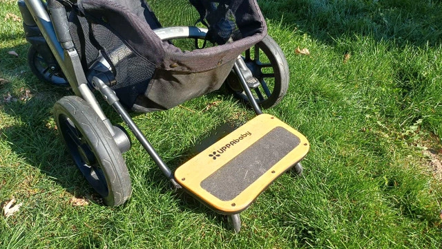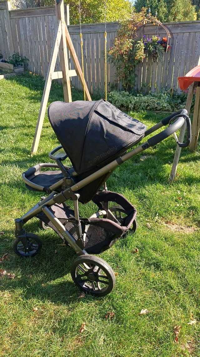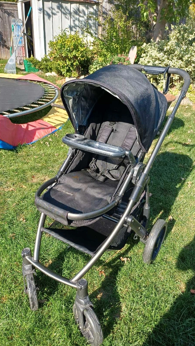 Used Uppa Vista stroller, complete with handy accessories! Rear skateboard, snack tray, Peg Perego car seat adapter, and bassinet. It's in good condition, just needs a good cleaning. $300 obo