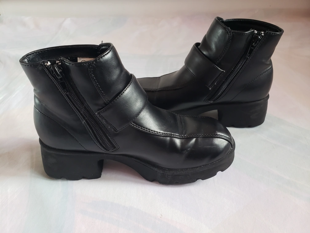 Selling a pair of vintage kids black ankle boots size 3 (for 7-9 years old) Features a buckle detail and a zipper opening on the side In great condition, minimal scratches (can't really see from a far) Hoping the item finds a new home! From a smoke-free & pet-free home Cash only & exact change All sales are final; no refunds or reservations Pick-up only Location: Richmond Hill Serious inquries only; messaging only through Karrot Thank you for your interest & please check my 200+ listings for more!