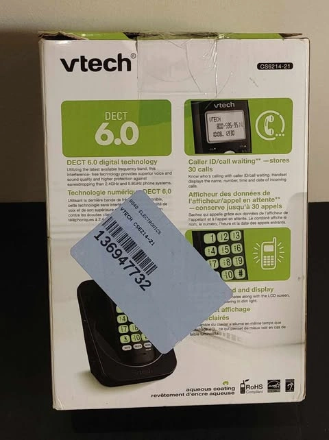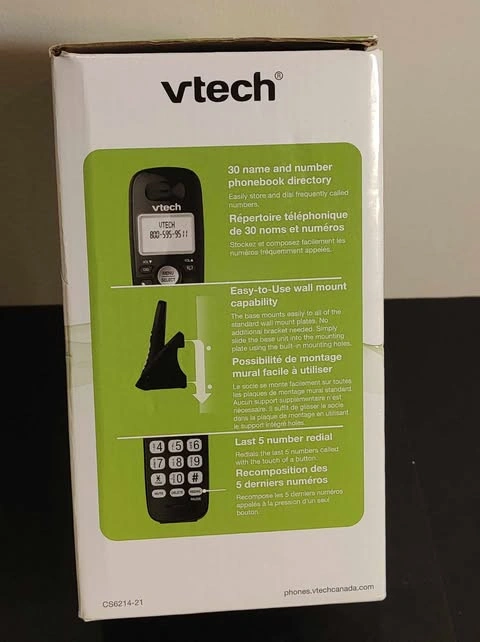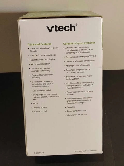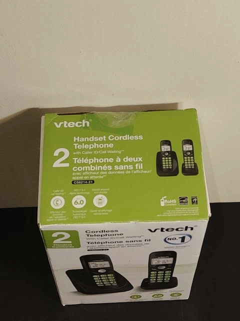 Stay connected with the VTech CS6214-21 cordless phone system. With two handsets, Caller ID, Call Waiting, and advanced DECT 6.0 technology, it’s perfect for home or office use. Key Features: Caller ID/Call Waiting: Stores up to 30 calls. DECT 6.0 Technology: Provides clear, interference-free sound. Backlit Keypad and Display: Perfect for low-light use. Wall Mount Capability: Easy and flexible setup options. Conference Feature: Supports calls with up to 2 handsets. Condition: New in Box. For more information or pickup details, feel free to message directly or contact at 289 788 8085.