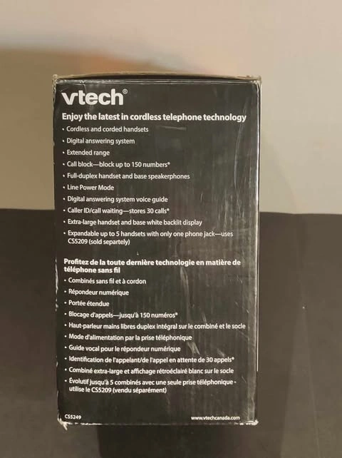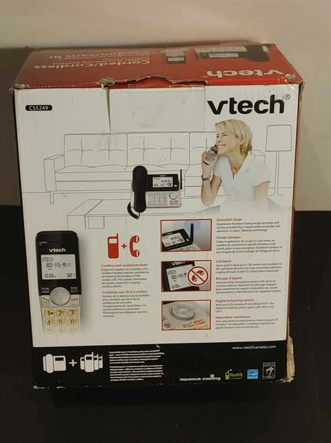 Enjoy the freedom of a cordless handset with the convenience of a corded base! The VTech CS5249 provides long-range coverage and clear calls with noise-filtering technology. Features include call block (up to 150 numbers), full-duplex speakerphone, high-contrast LCD, backlit keypad, 22-minute answering machine, and talking prompts for easy setup. Like new! Feel free to message if you have any questions!