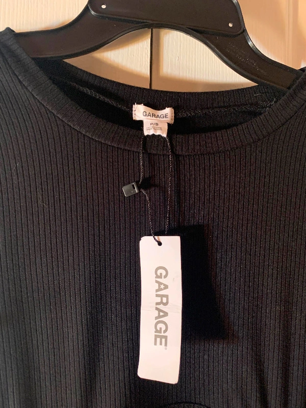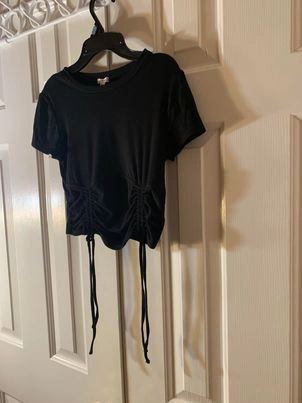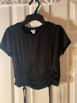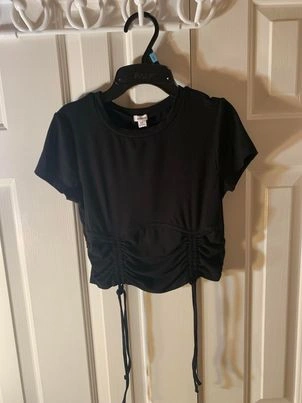 Stylish Black Cropped Top - New with Tag! - Add a trendy piece to your wardrobe with this chic black crop top! Perfect for pairing with high-waisted jeans or skirts for a casual yet stylish look. ✨ Adjustable Drawstrings - Features drawstring ruching on both sides for a customizable fit. Adjust the length to suit your style! Soft & Comfy Material - Made with a blend that feels soft on the skin, keeping you comfortable all day long. Size: P/S - New with tag still attached! For more information or pickup details, feel free to message me directly here or contact me at 289-788-8085.