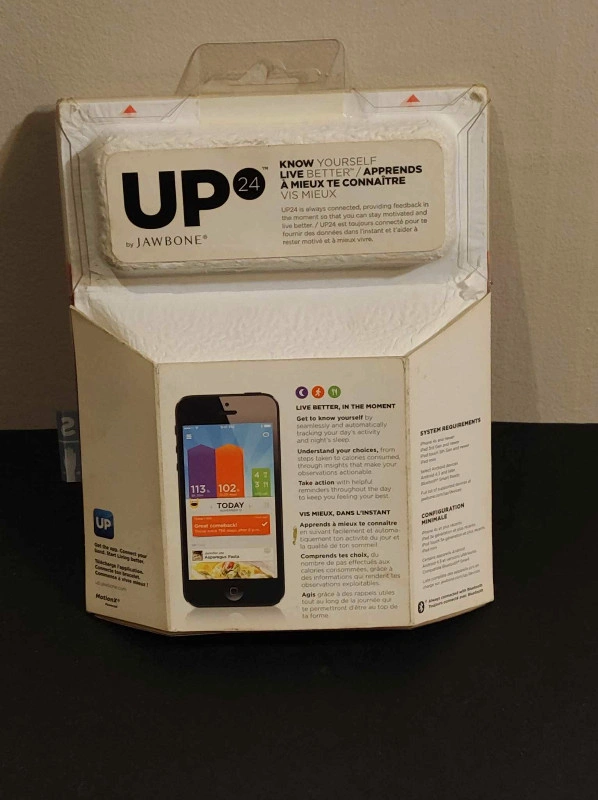 Take charge of your fitness journey with the Jawbone UP24 Fitness Tracker. This stylish and lightweight wristband helps you track your daily activity, steps, calories burned, and sleep patterns, empowering you to live healthier and more aware. With Bluetooth connectivity, it seamlessly syncs to your smartphone for real-time insights and recommendations through the UP App. Key Features: Tracks steps, distance, calories burned, and active time. Monitors sleep patterns and offers tips for better rest. Wireless syncing with Bluetooth for real-time data. Compatible with the Jawbone UP App for tailored insights. Long battery life and easy USB charging. Condition: Brand New "They're not just Good Finds, they're GREAT FINDS! " For more information or pickup details, feel free to message directly or contact at 289 788 8085.