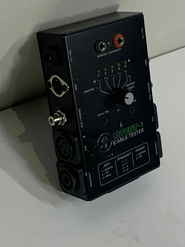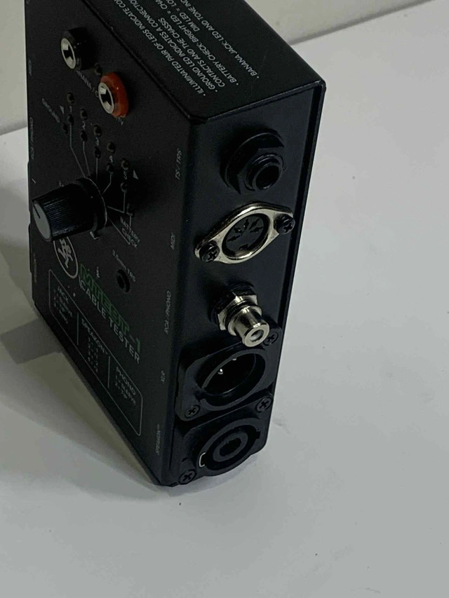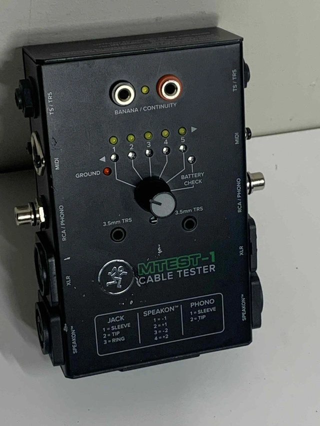 Need to test audio lines fast and accurately? The MTEST-1 Cable Tester is your go-to tool — built by the same team behind Mackie gear . Plug in almost anything: XLR, 1/4", RCA, MIDI, 3.5mm, Banana, Speakon Rotate through pins using the 6-way selector Get instant feedback with the LED indicators Probe-ready for manual continuity testing Battery-powered (9V not included) Fully functional and in clean working condition Ideal for: Techs, DJs, studios, event setups — or anyone who flips gear professionally. Message directly here or call/text 289-788-8085 with any questions — happy to help.