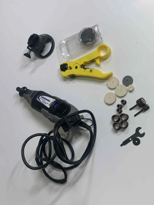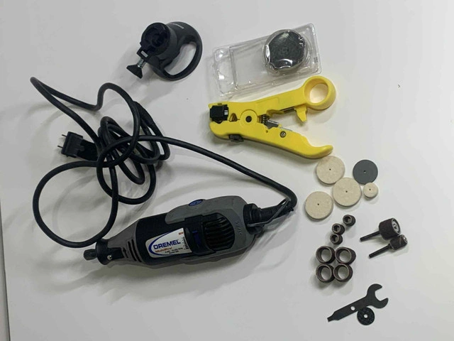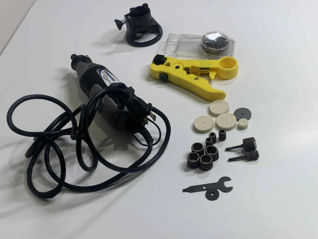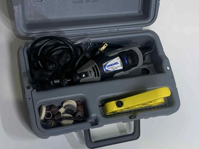 Dremel MultiPro Rotary Tool – Model 395 Type 5 ⚡ Corded 120V — 5,000–35,000 RPM Includes: • Tool • Storage Case • Bits, Pads & Cut-Off Wheels • Wrench • Black Guide Attachment. Condition: Used – Good. Works great. Everything shown is included. Contact: Message directly here or call/text 289-788-8085 with any questions — happy to help.