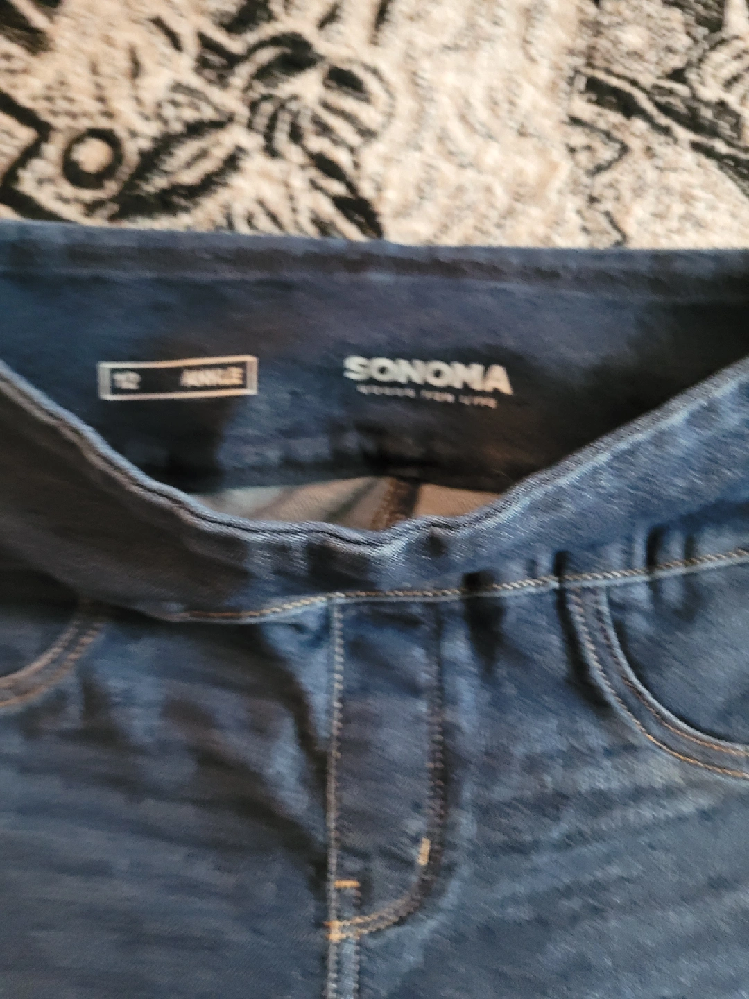 These Sonoma brand jeans, size 12, offer both comfort and style! The denim is in good condition, perfect for everyday wear. They feature a pull-on design, which means no zippers or buttons to worry about. Additional Details: * Brand: Sonoma * Size: 12 * Style: Pull-on ankle jeans Ready to give these jeans a new chapter? If you see this ad it's still available!