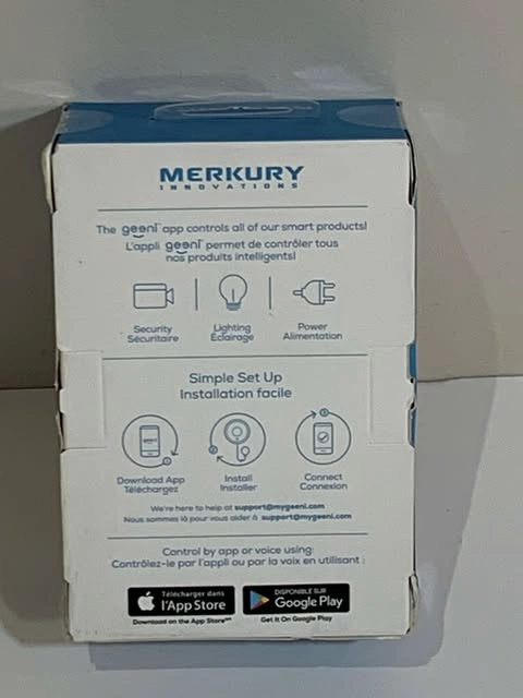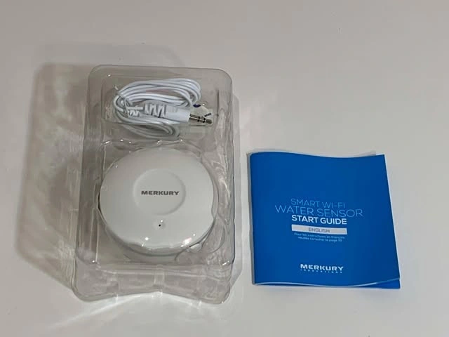Stay ahead of potential water damage with the Merkury Smart Wi-Fi Flood Sensor. This compact, easy-to-use device sends instant alerts to your smartphone when water is detected, helping you prevent costly repairs before it's too late! Perfect for basements, bathrooms, laundry rooms, and under sinks! Key Features: Wi-Fi Connectivity – No hub required! Instant Alerts – Get notified on your phone when leaks are detected Smart Home Integration – Works with the Geeni app Easy Installation – Mount it with screws or adhesive Versatile Placement – Ideal for bathrooms, basements, laundry rooms, and hot water heaters Battery-Powered for Flexible Placement Control and monitor from anywhere Condition: New